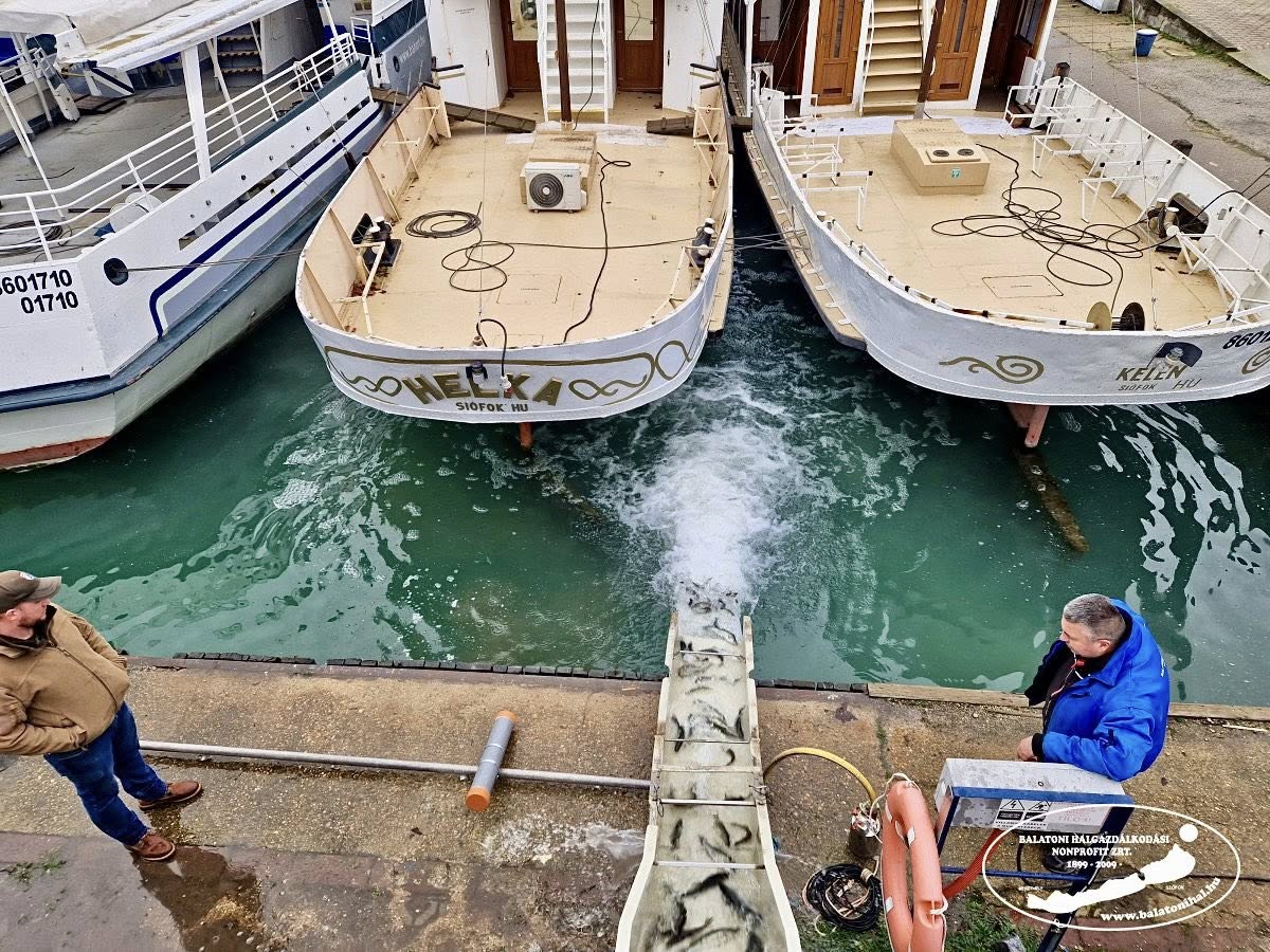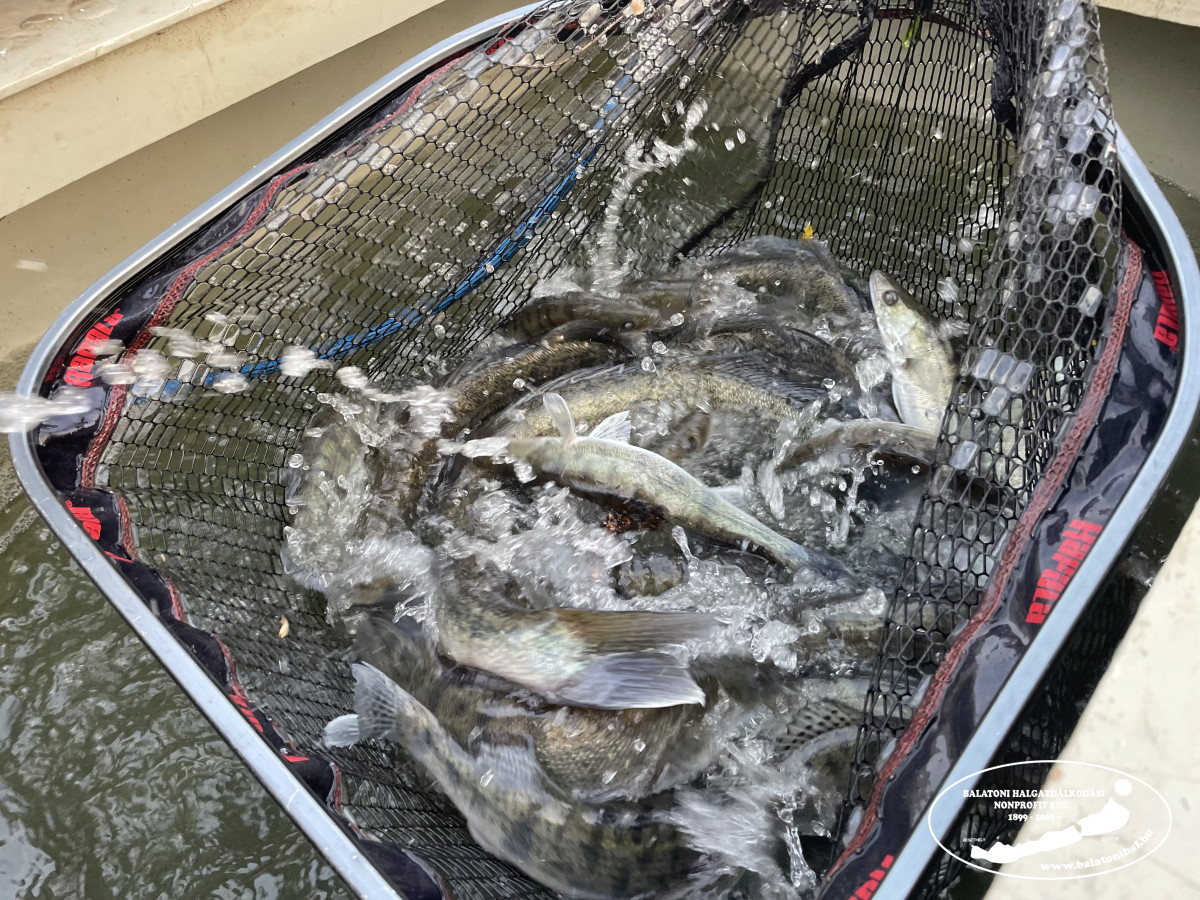 Egynyaras süllőből 2025-ben összesen 6 174 kg-ot telepítettünk a Balatonba, így idén is sikerült meghaladni az előírt 6 000 kg-os éves kötelezettségünket. Ahogy a beszámolókban láthatták, ahol megoldható volt a kíméletes leengedés, ott csúszdával, máshol leszákolva, vizes kosarak segítségével zajlott a süllőtelepítés.