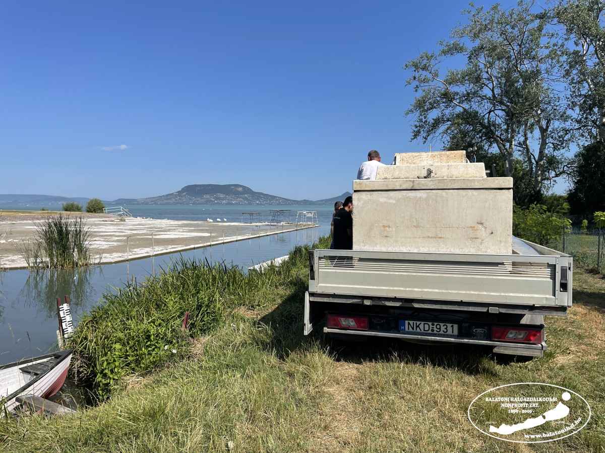 Mindezt megtoldottuk még: terven felül, 671 kg egynyaras csukát helyeztünk ki a keleti-medence északi partján leszákolva, vizes kosarak segítségével.