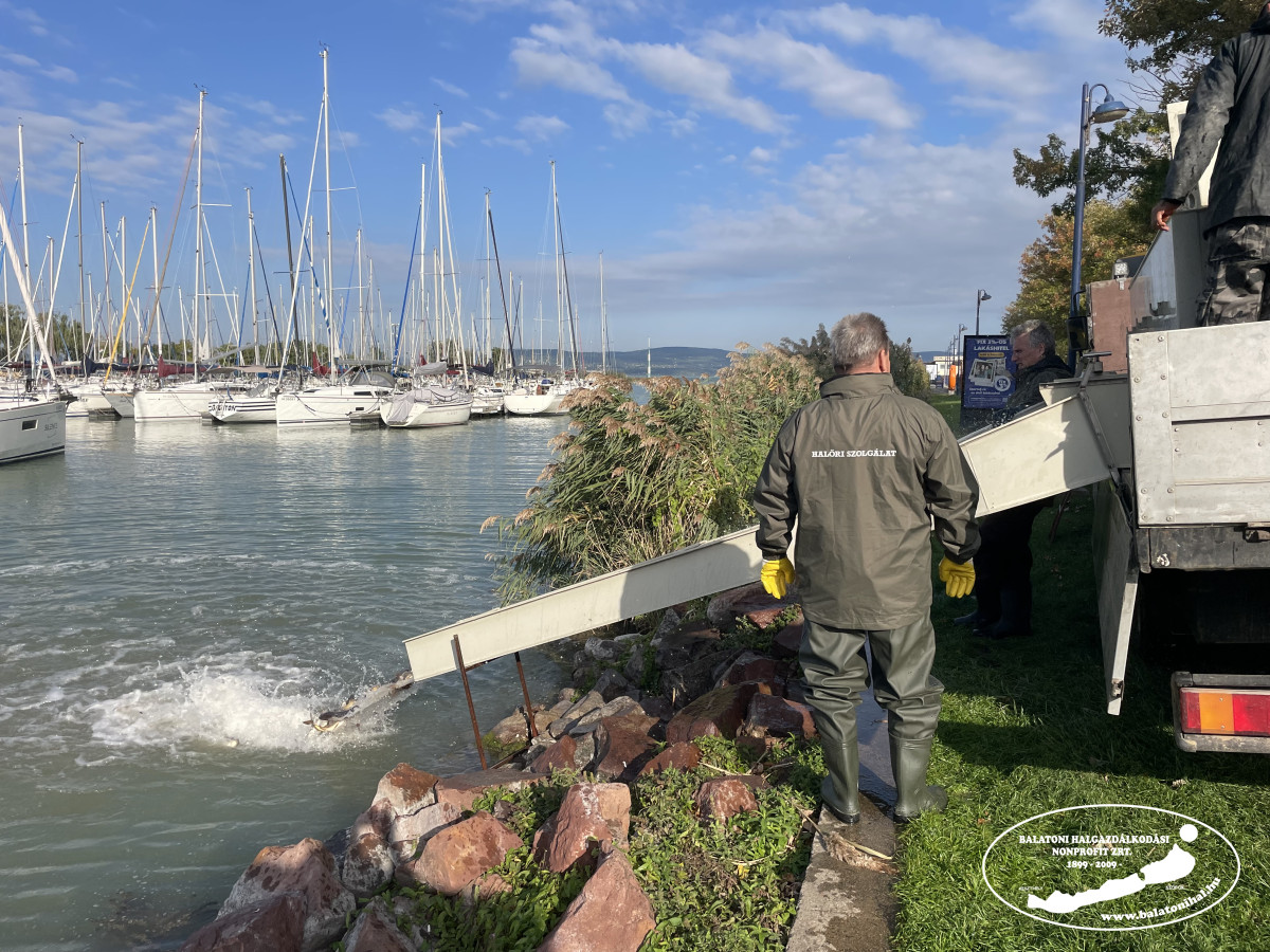 Az őszt tekintjük a pontytelepítések fő szezonjának, mert ekkor halásszuk le tógazdaságaink halastavait, de tavaly is szerveztünk tavaszi és nyári telepítéseket is. Éves szinten 300.000 kg vegyes 2-3 nyaras korú ponty szerepel a telepítési kötelezettségünkben. Ezt a tavalyi évben is sikerült teljesíteni: összesen 300 689 kg pontyot telepítettünk a Balatonba, amelyből 36 666 kg volt kétnyaras korú. A horgászok általában jobban örülnek a háromnyaras pontynak, azonban érdemes figyelembe venni, hogy egy átlagos tömegű háromnyaras ponty 3-4 db átlagos kétnyaras pontyot jelent!