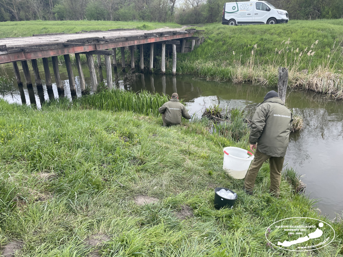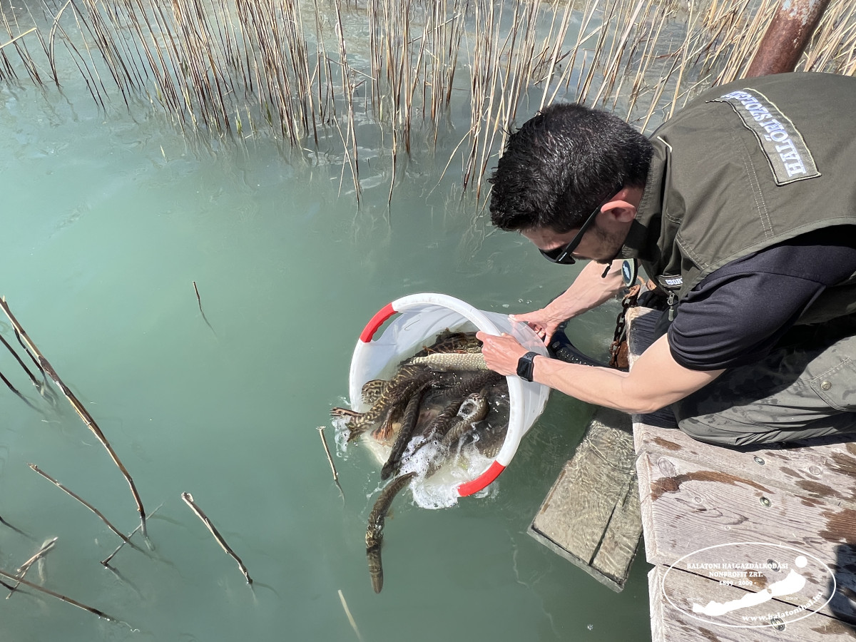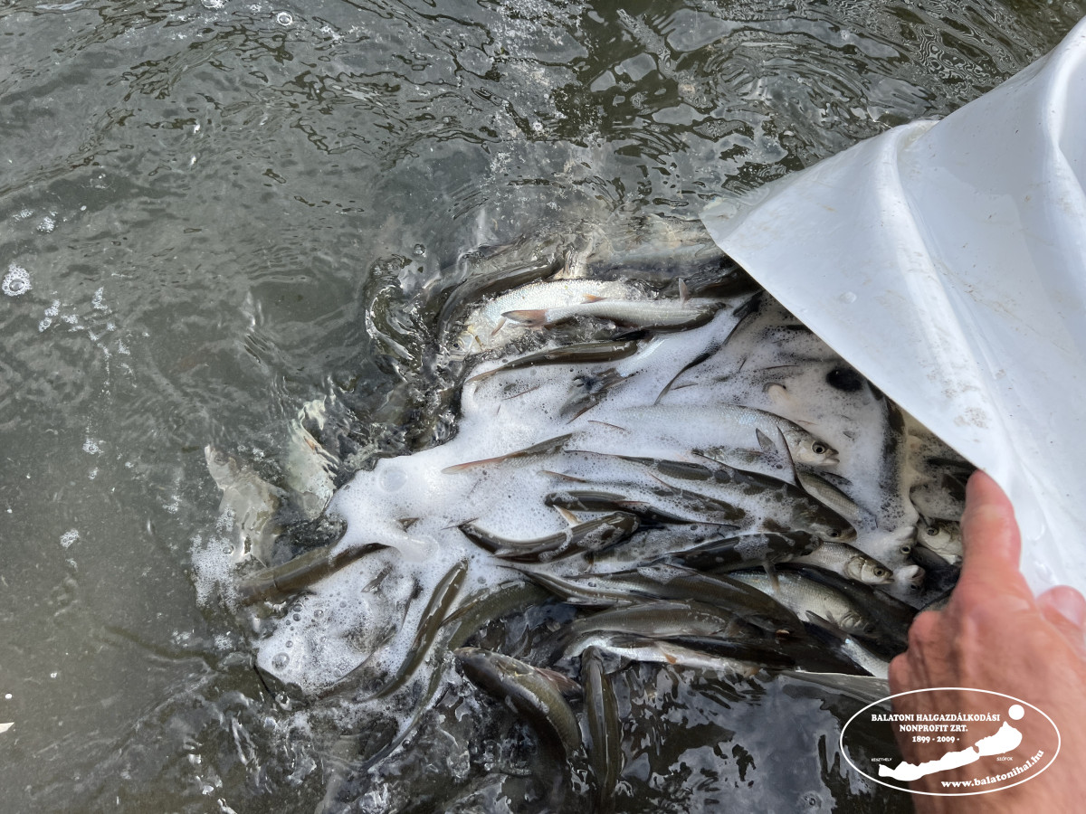 Előnevelt csukából is teljesítettük az előírt kötelezettségünket: összesen 251 000 db-ot helyeztük ki a Balatonba és a vízrendszer befolyóiba. A kis csukákat idén is oxigénnel felfújt zsákokban szállítottuk a Balaton partjára, ahol a helyi horgászok a csónakjaikból, valamint kollégáink a halőri motorcsónakokból és a csatornák partjairól engedték őket szabadon a parti növényzet előterében.