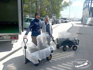 Az előnevelt 2-4 cm-s csukákat az előnevelő tavak elfolyó vizéből szűrve fogták meg kollégáink, majd vízzel töltött és oxigénnel felfújt zsákokba kerültek. Ezekben a zsákokban utaztak el a halak a telepítések helyszíneire.