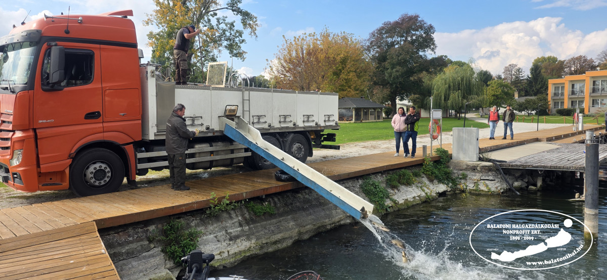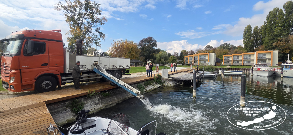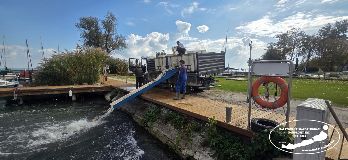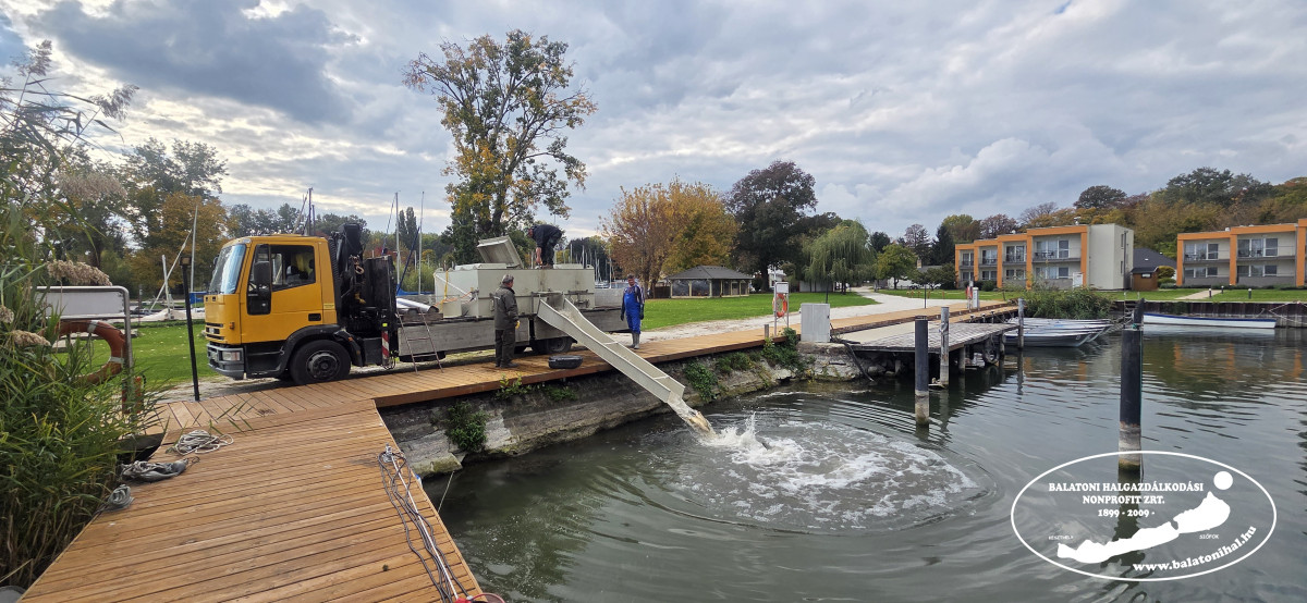 Az első fuvarról 6 193 kg-ot, a másodikról további 3 610 kg-ot, valamint az utolsó szállítmányról pedig 2 799 kg háromnyaras, fogható méretű pontyot engedtünk le csúszda segítségével a Balatonba.