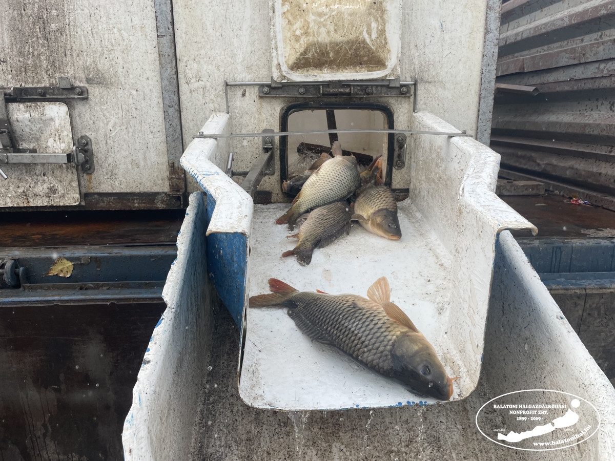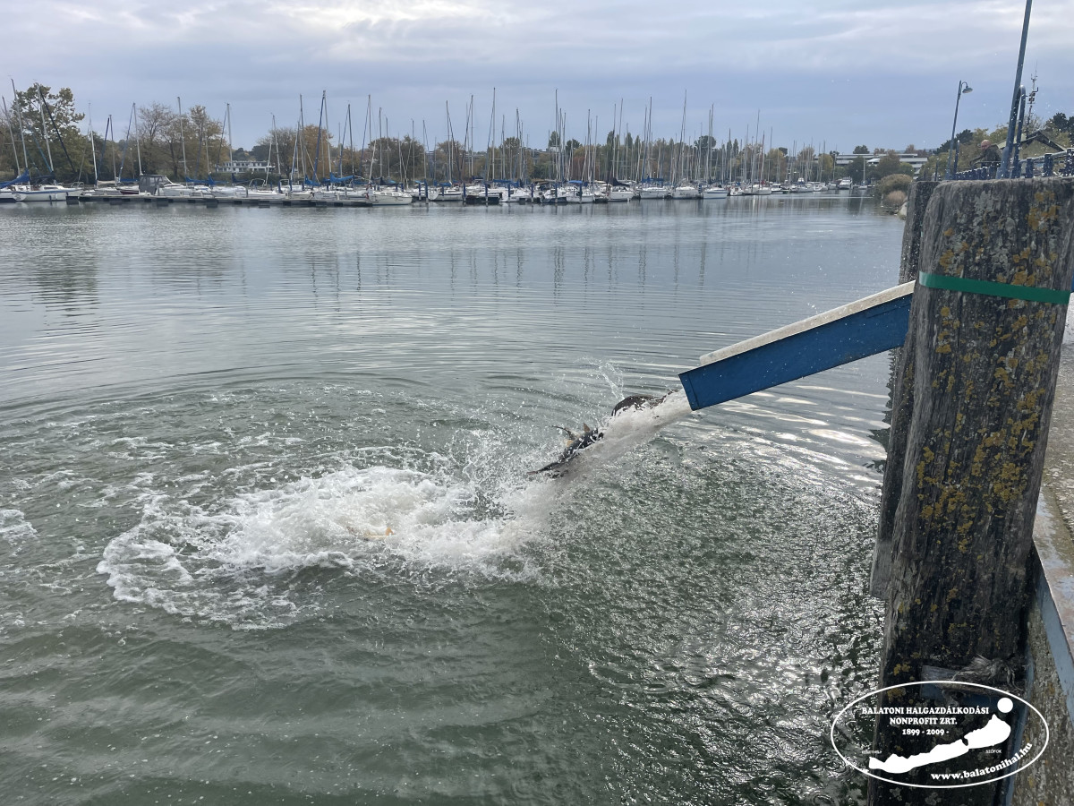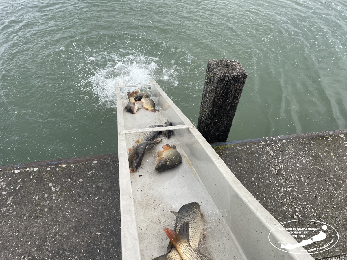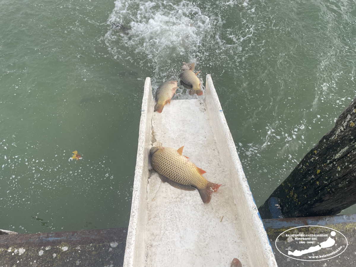 Az említett két halszállítmányt a balatonszemesi kikötőben engedtük le csúszda segítségével a vízbe.