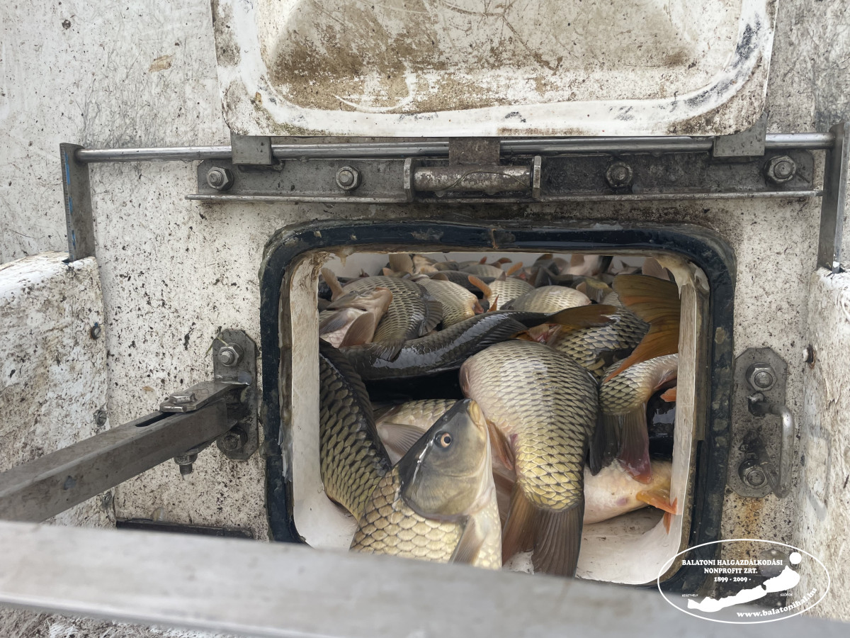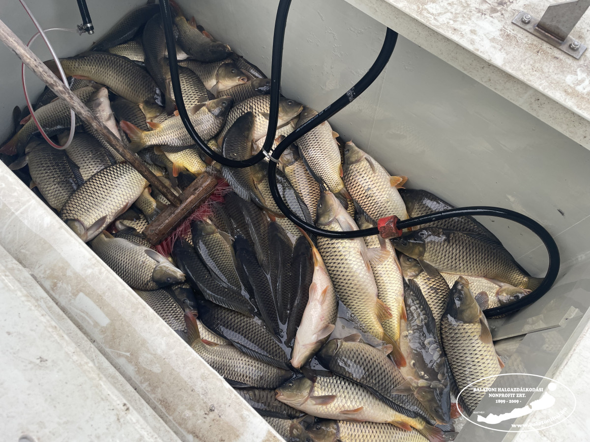 Tegnap két fuvarral összesen 4 799 kg háromnyaras, fogható méretű pontyot telepítettünk a Balatonba. Ezzel együtt idén összesen 202 743 kg-ot teljesítettünk a 300.000 kg-os éves telepítési kötelezettségünkből.