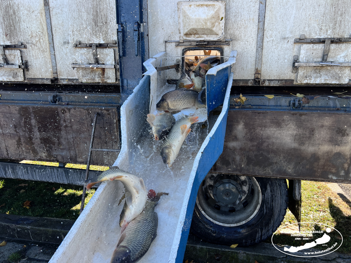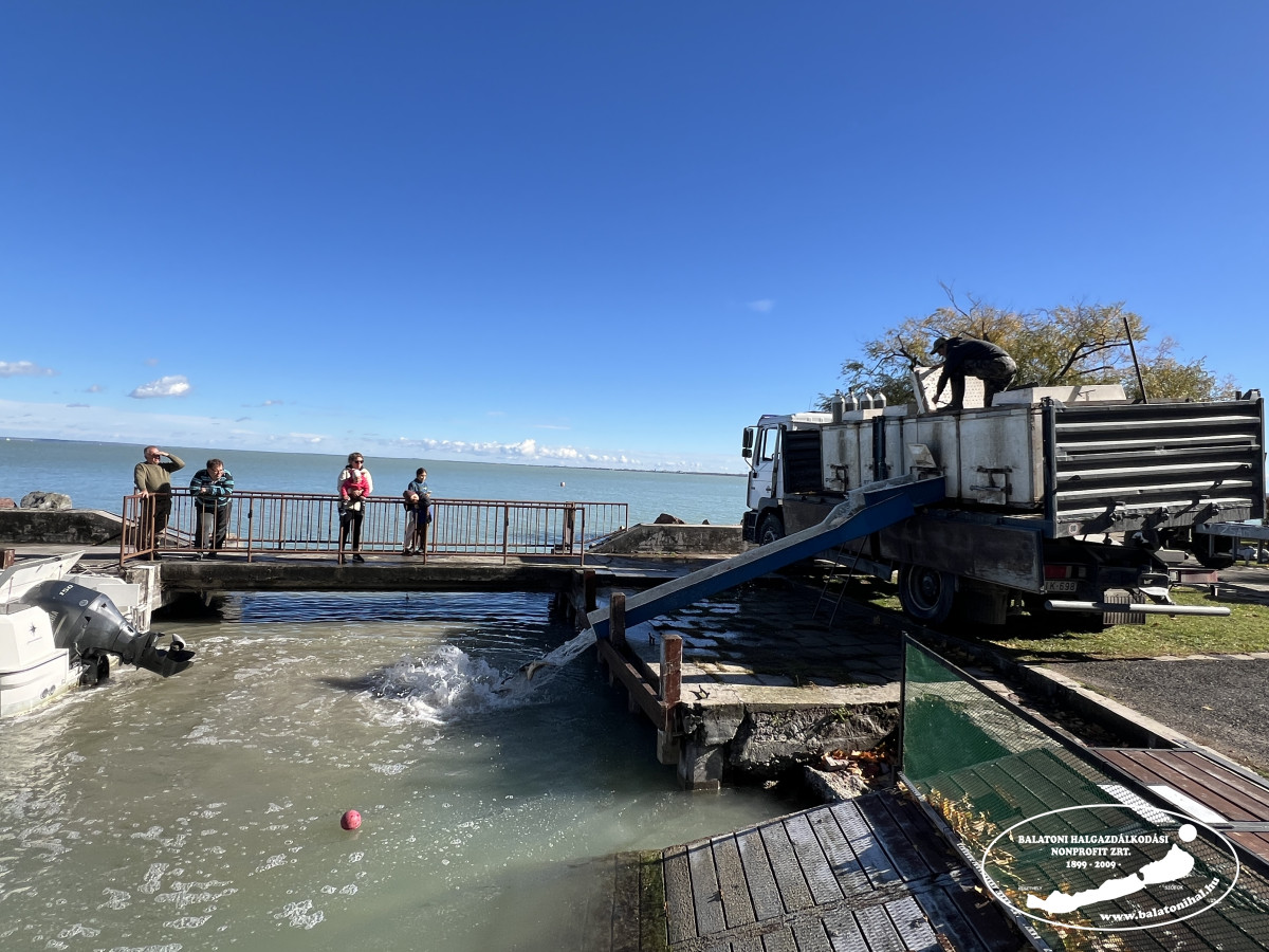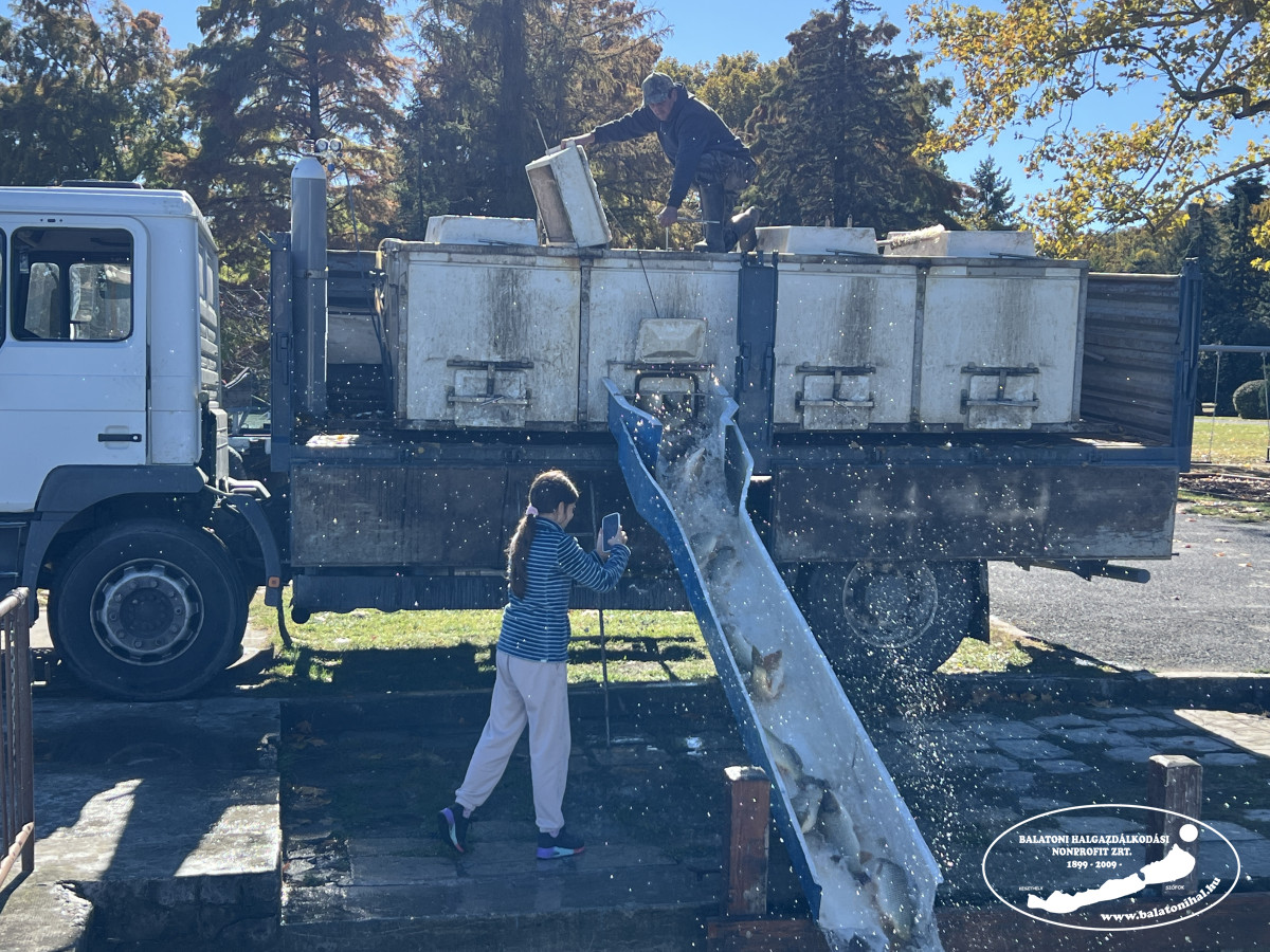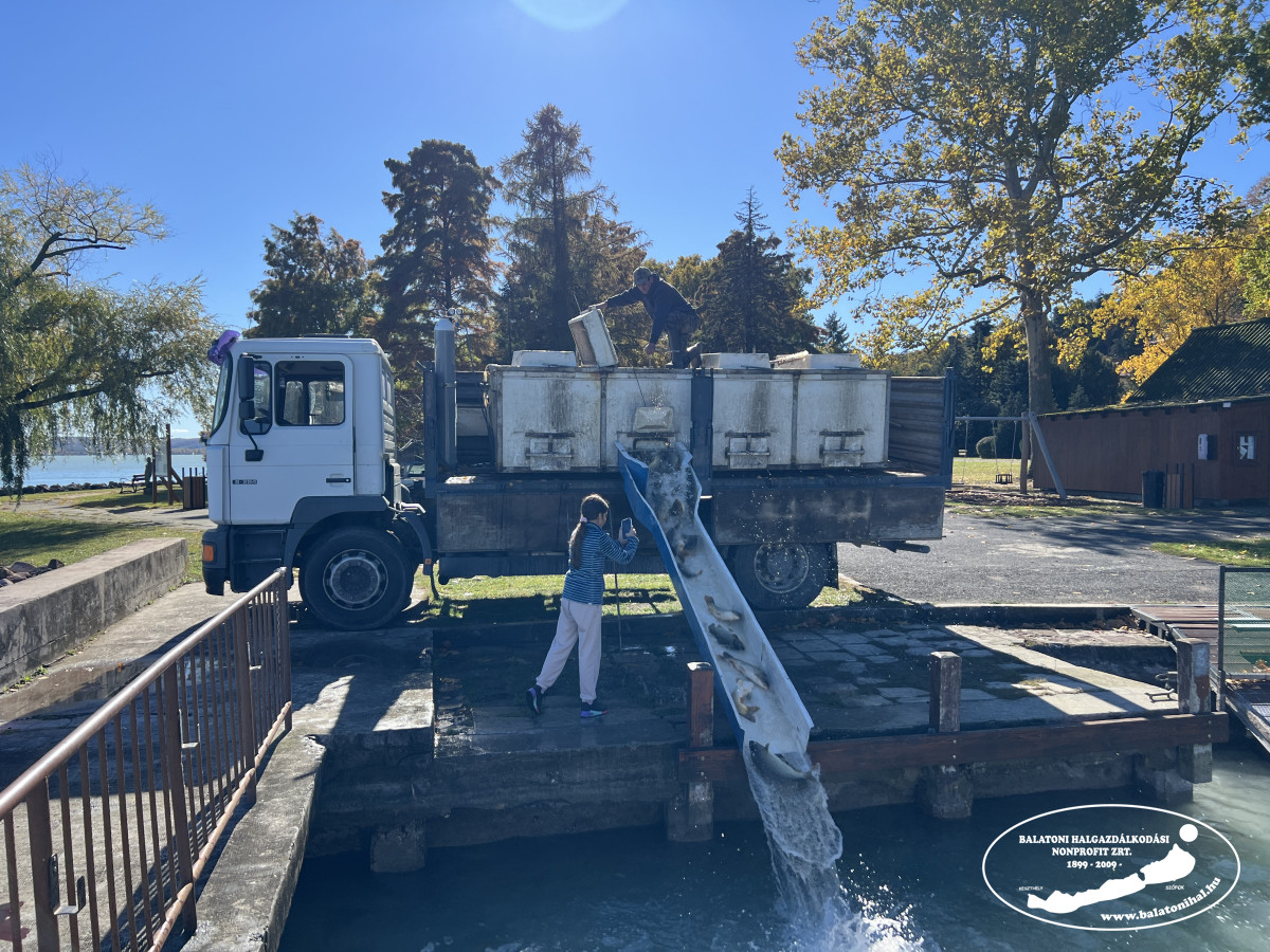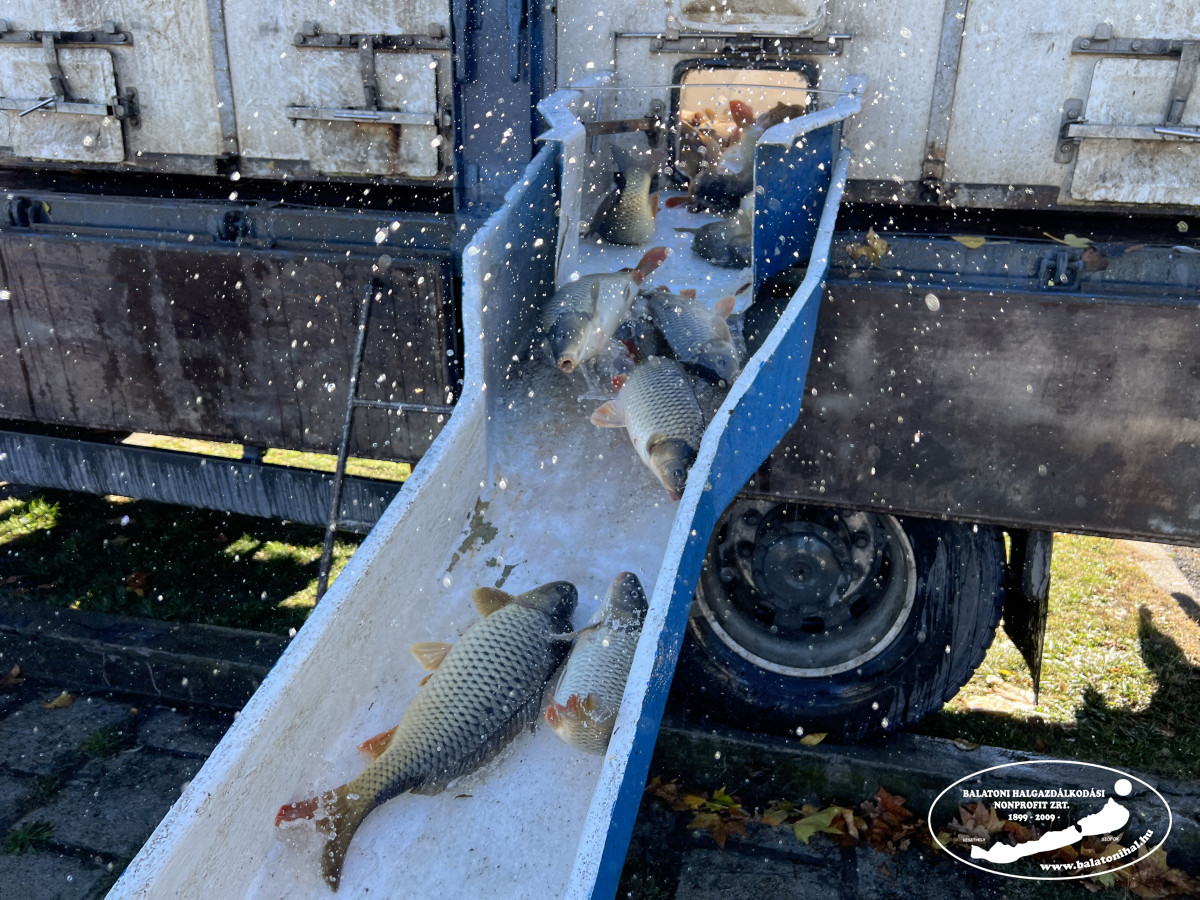 Ma délután, 2 765 kg pontyot engedtünk le a halszállító autó kádjairól Tihanyban, a HUN-REN BLKI kikötőben.