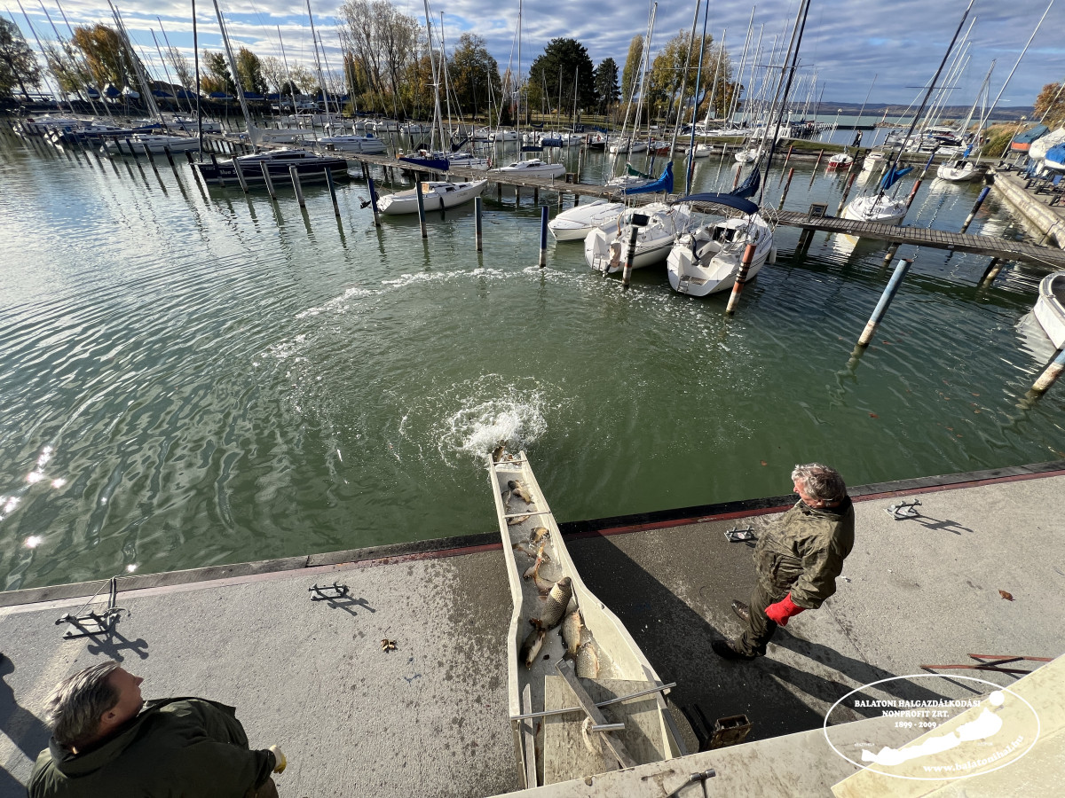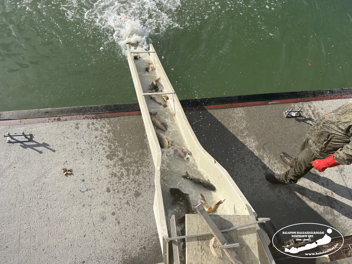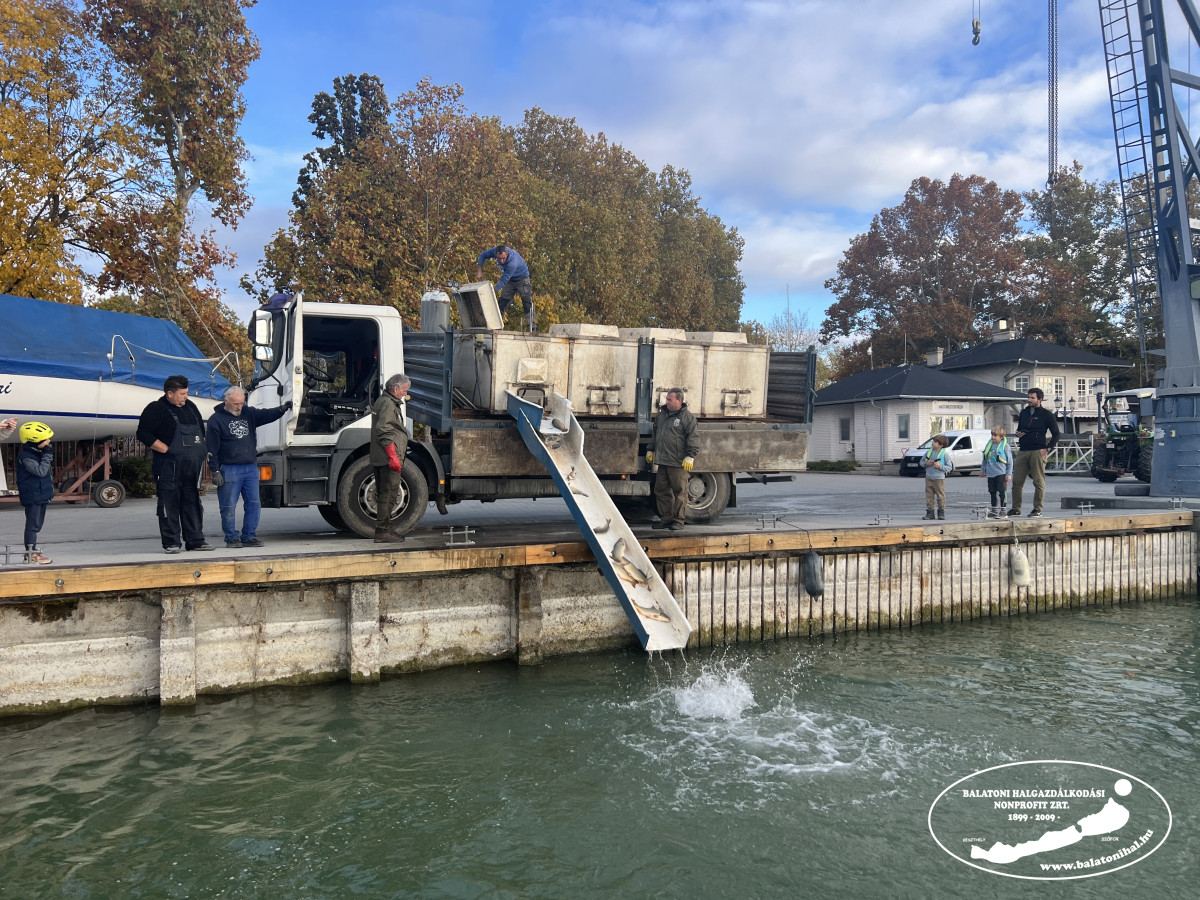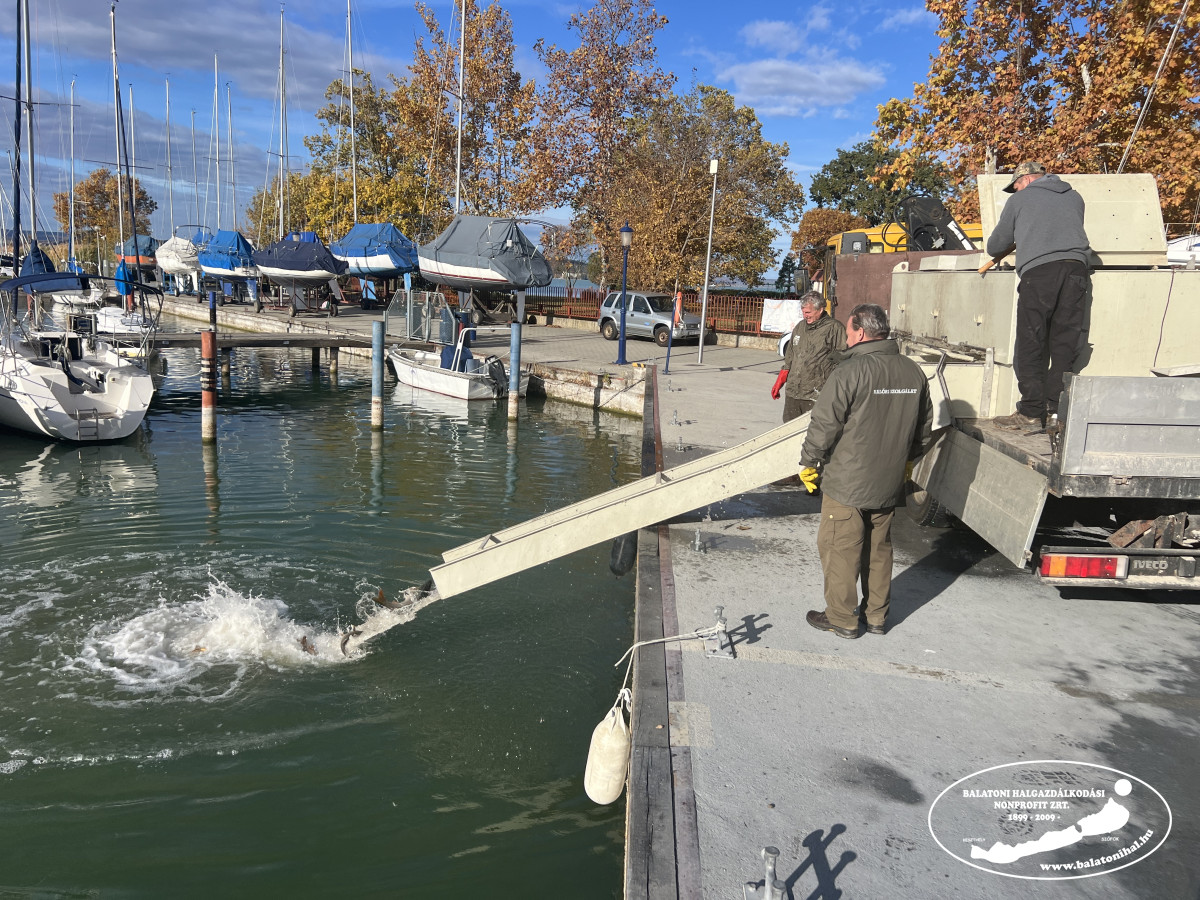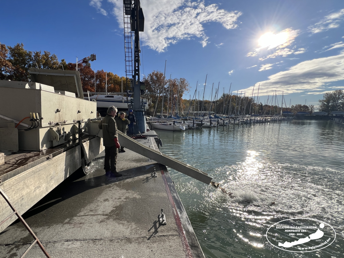 A fentnevezett mennyiséget a balatonföldvári kikötőben engedtük le a halszállító autók kádjairól, a helyi horgászok jelenlétében.