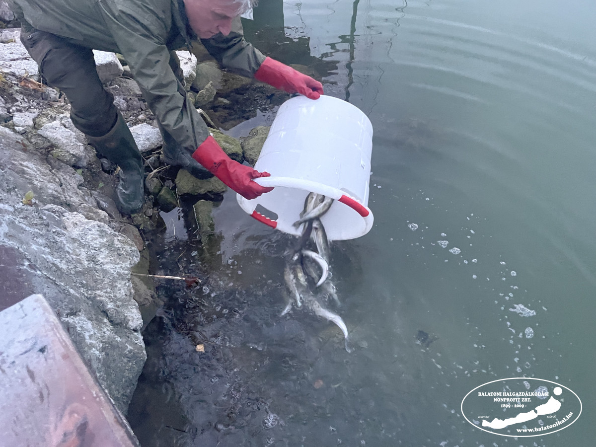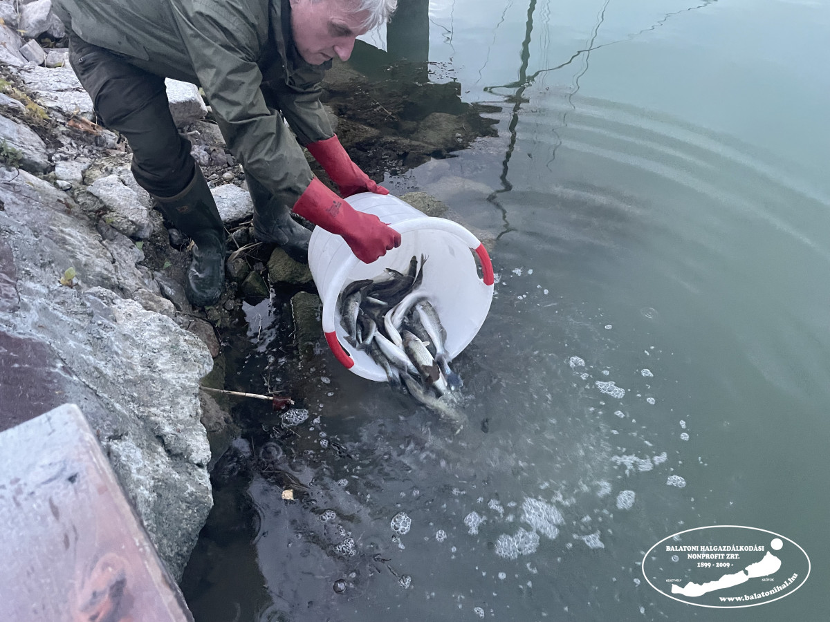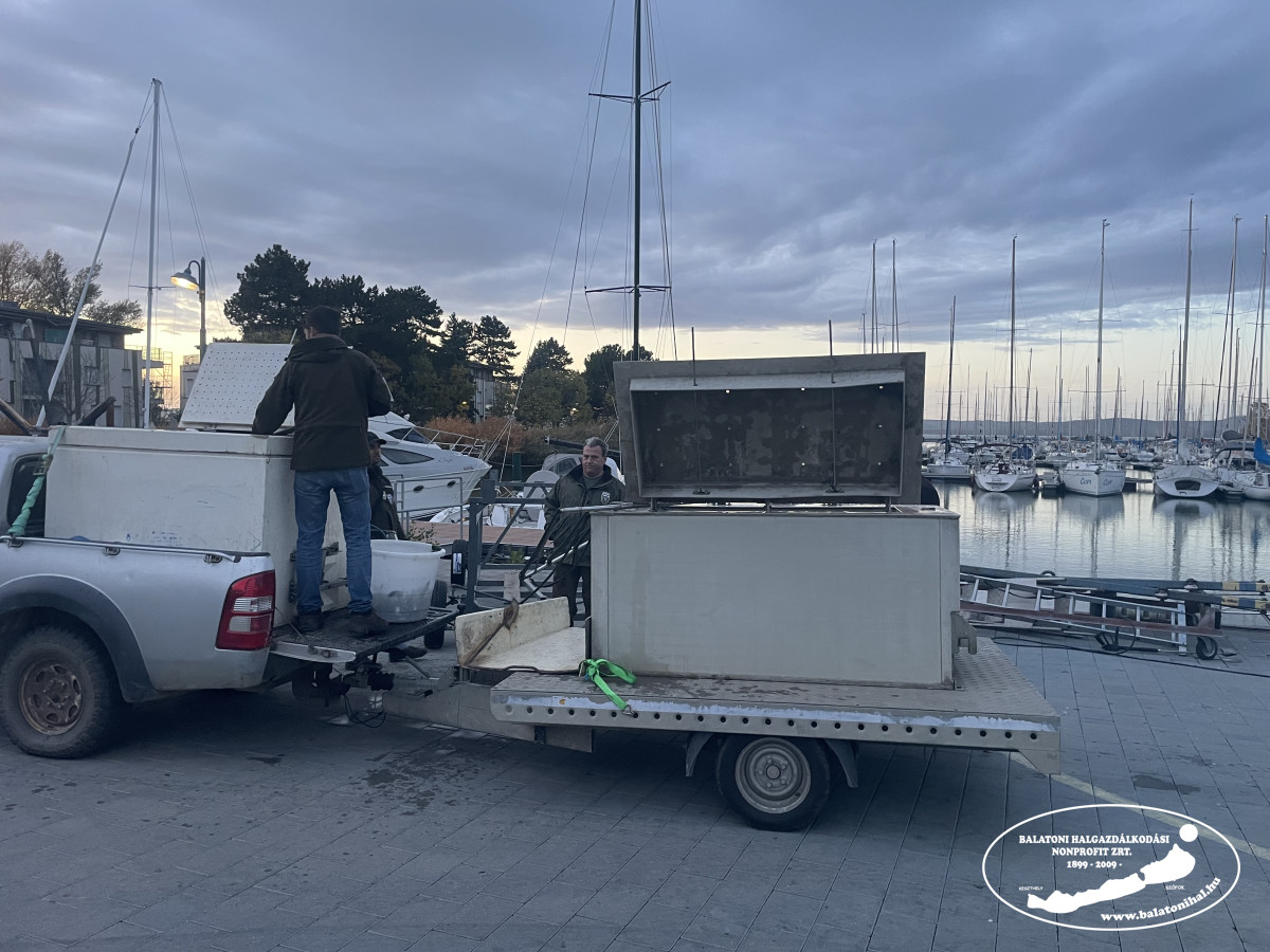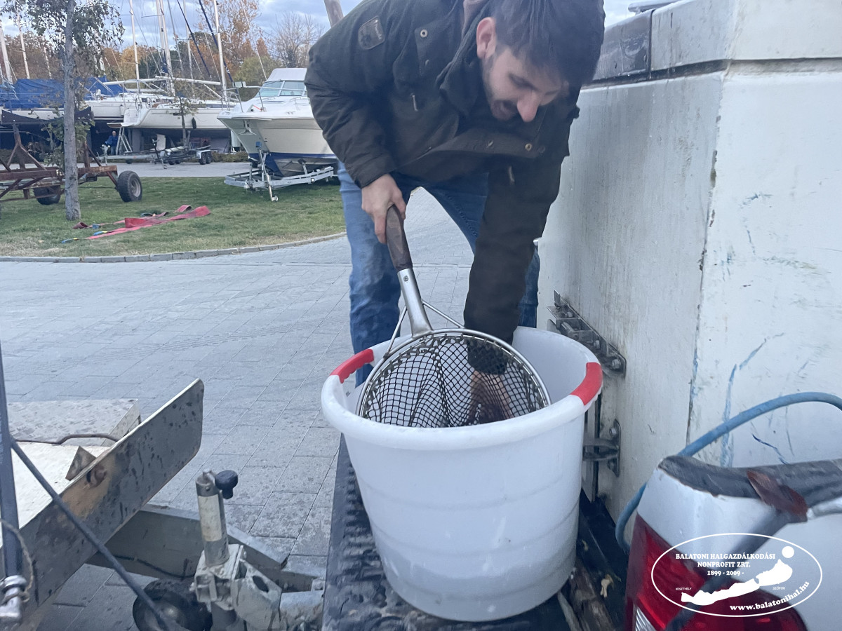 Az említett mennyiséget a balatonszemesi kikötőbe szállítottuk, ahol leszákolva, halas kosarak segítségével engedtük a Balatonba halőr kollégáink jelenlétében.