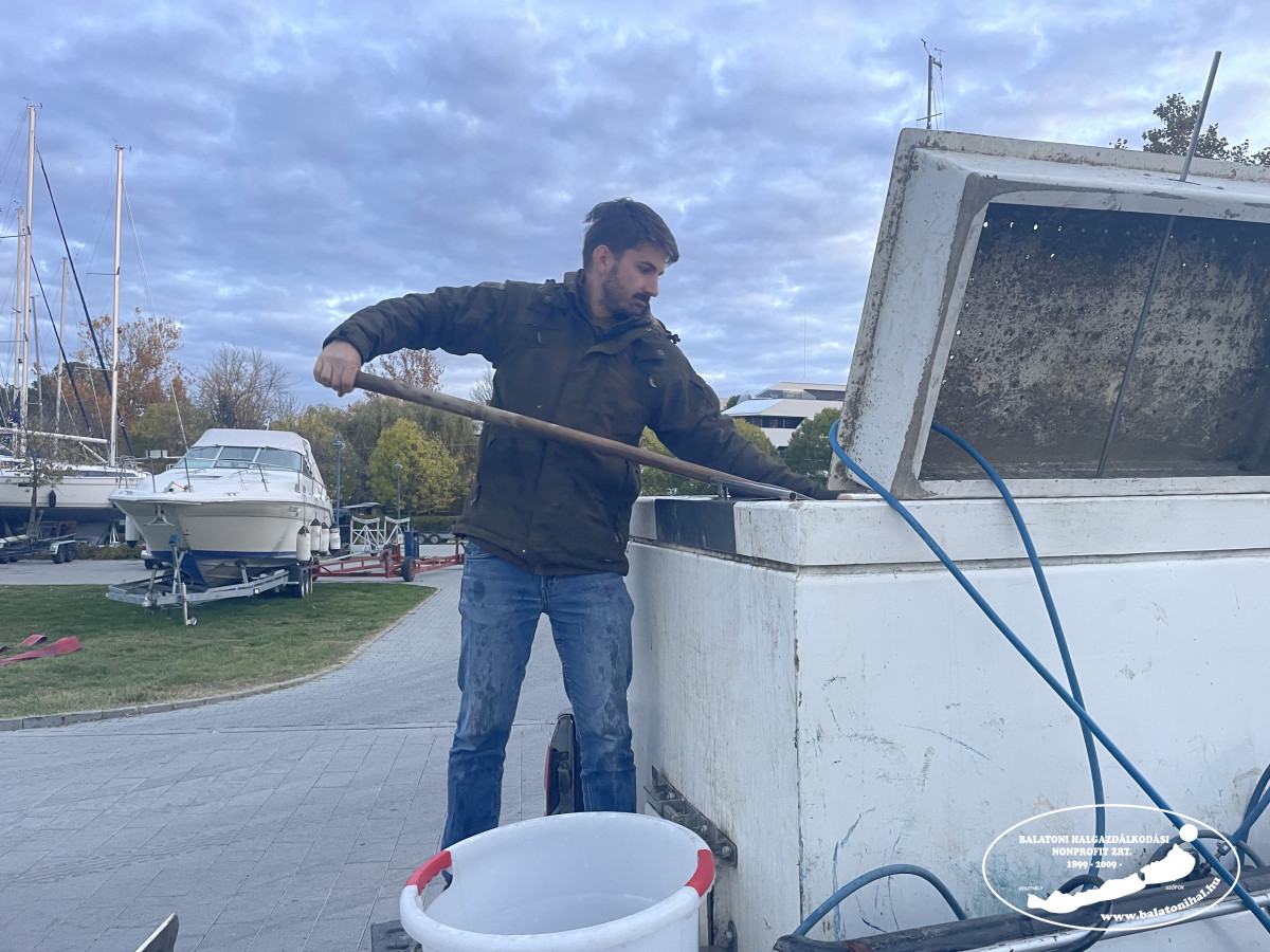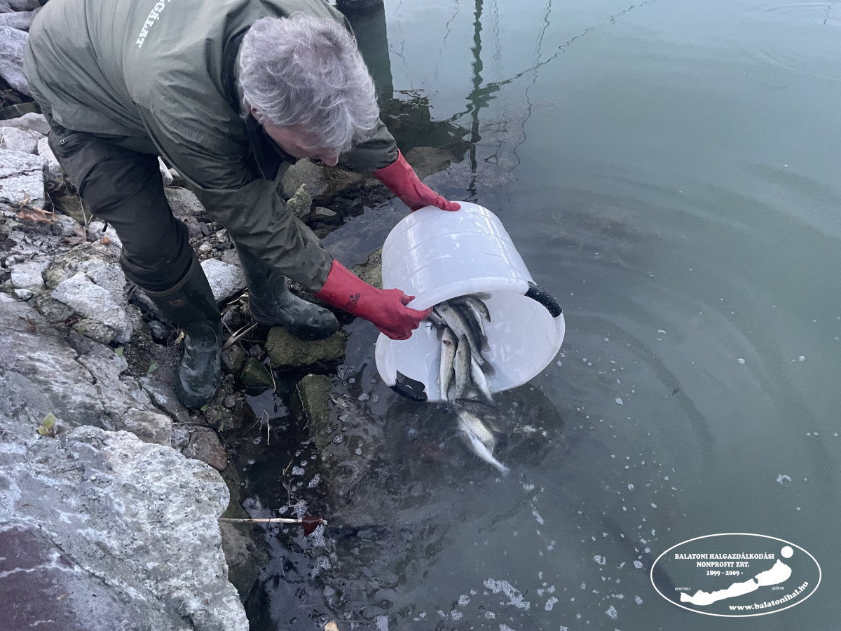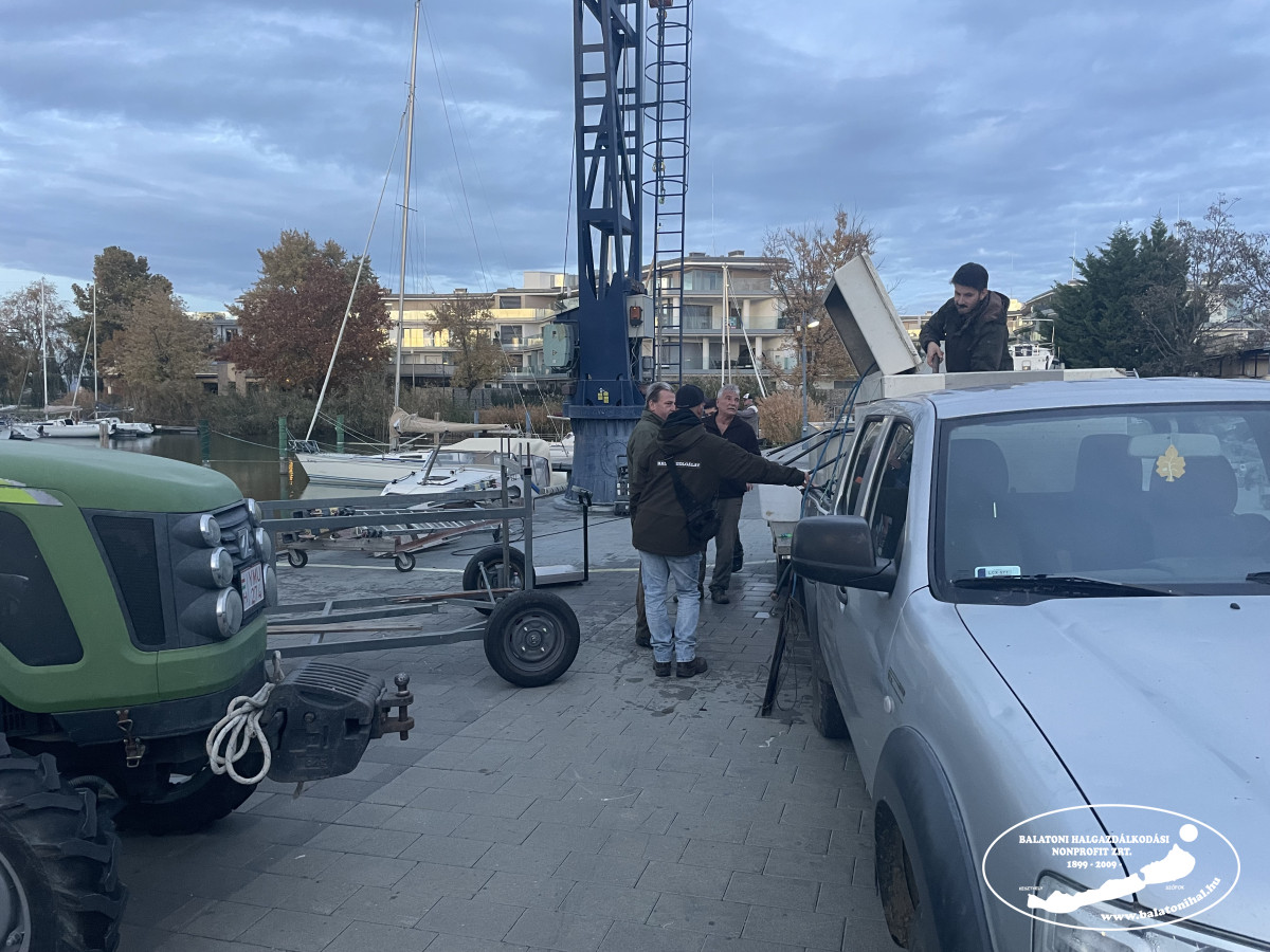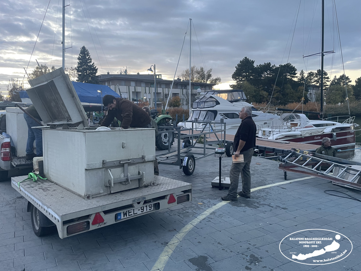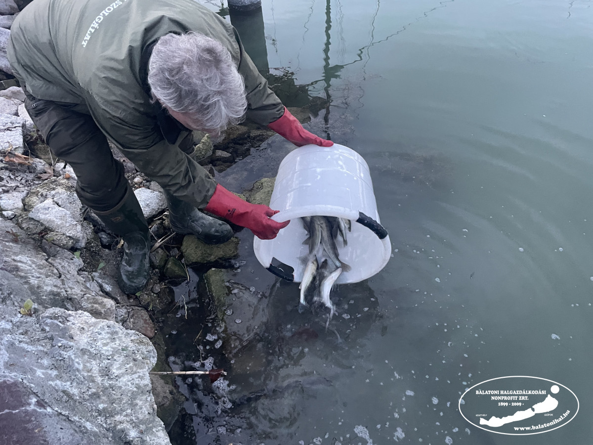 Az említett mennyiséget a balatonszemesi kikötőbe szállítottuk, ahol leszákolva, halas kosarak segítségével engedtük a Balatonba halőr kollégáink jelenlétében.