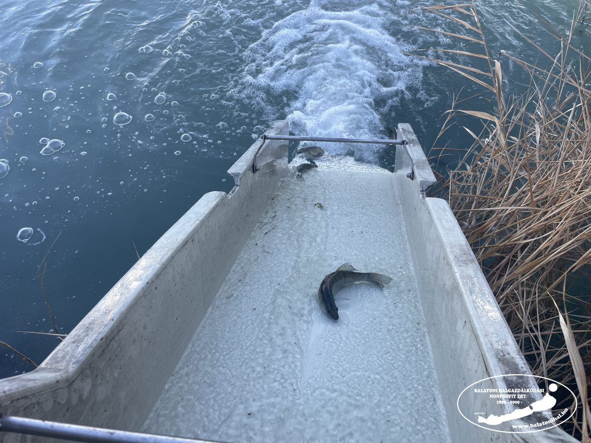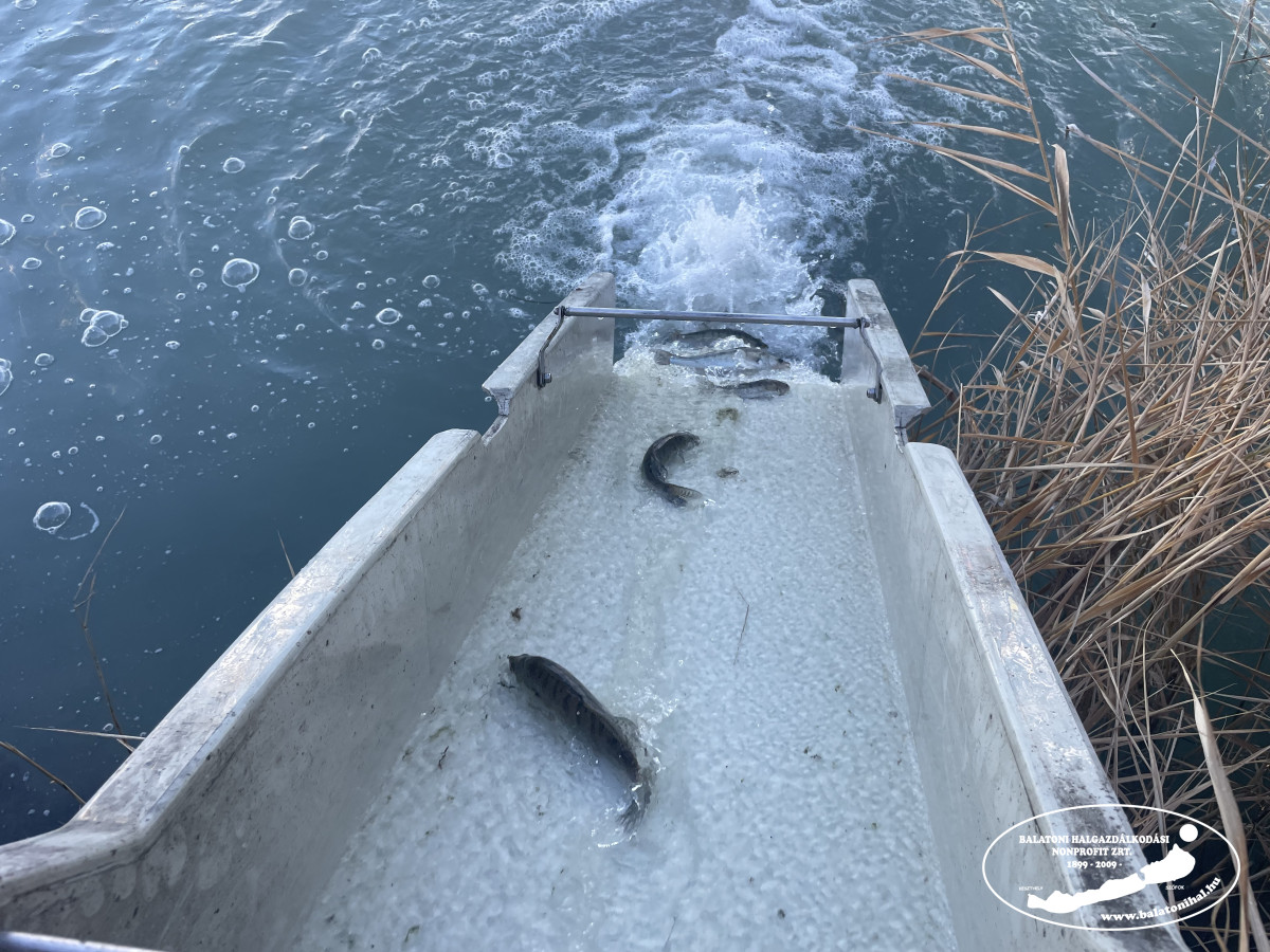 A fent említett mennyiséget Balatonkenesén, a helyi horgászegyesület kikötőjében engedtük le csúszda segítségével a halszállító autó kádjairól. A nevezett telepítés a helyi horgászok jelenlétében zajlott.