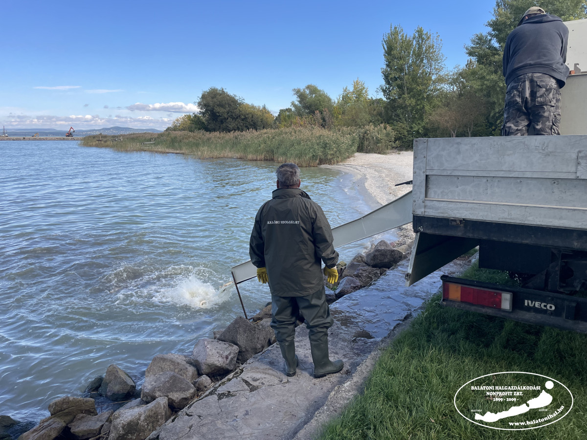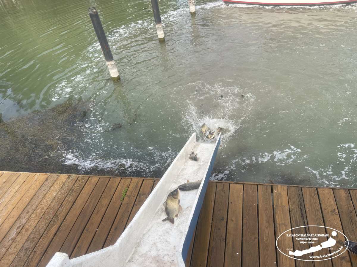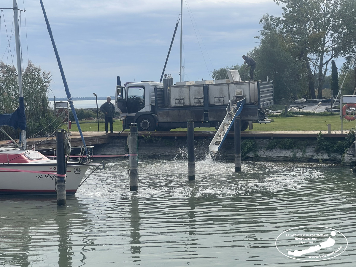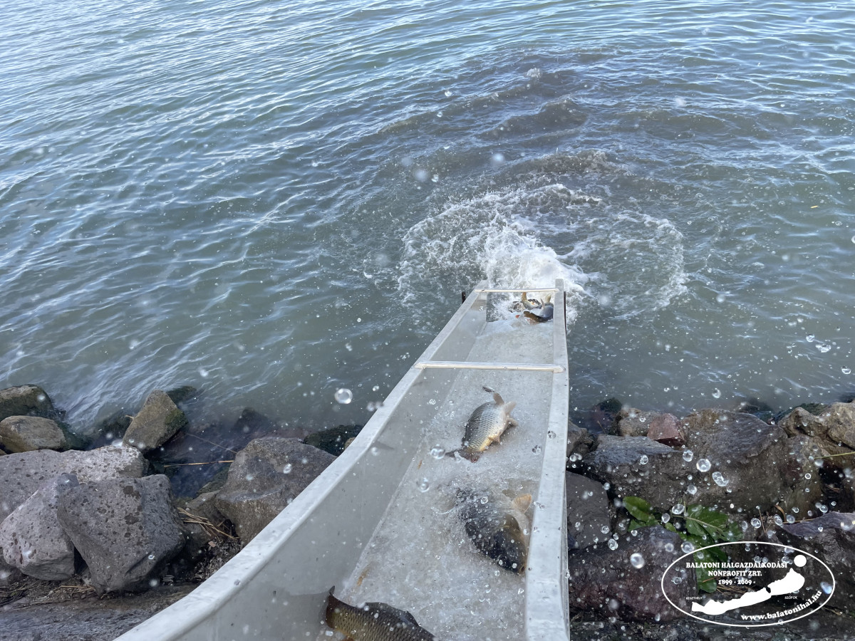 Balatonfűzfőn a helyi horgász egyesület kikötőjében egy pótkocsis kamionnal 10 495 kg, míg Fonyódon a Kutyás strandon két fuvarral 5 480 kg háromnyaras pontyot telepítettünk a Balatonba. Keszthelyen, az Akvárium Apartmanházak kikötőjébe is érkezett egy halszállítmány. Itt összesen 3 445 kg háromnyaras pontyot csúszdáztattunk a tóba.