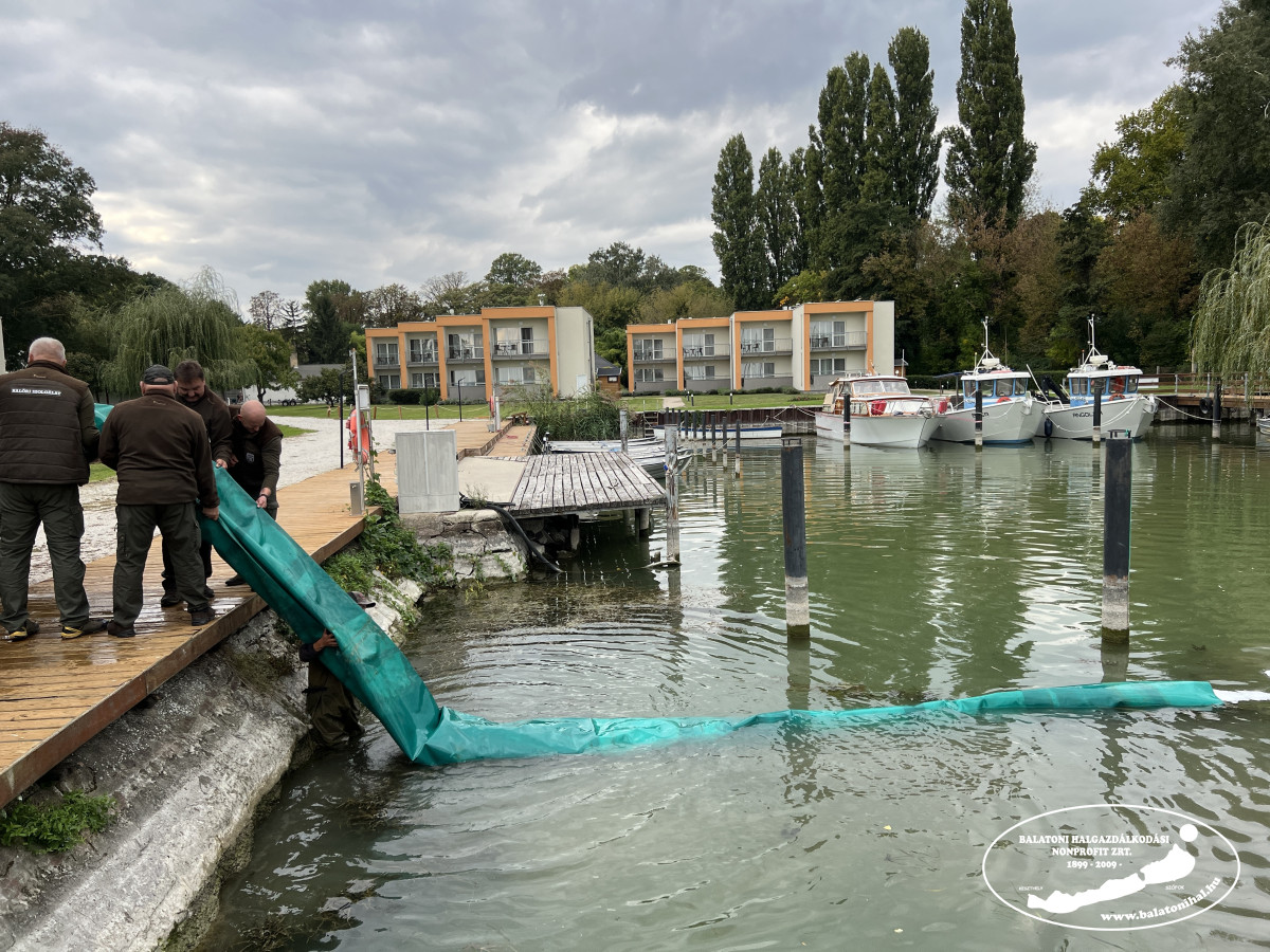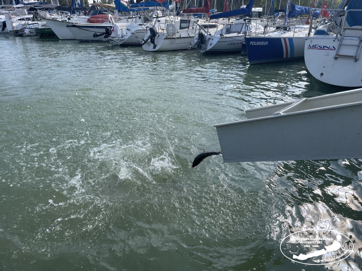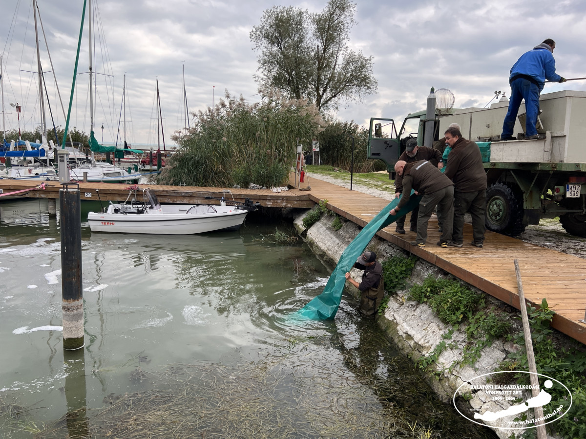 A napot Keszthelyen, az Akvárium Apartmanházak kikötőjében zártuk, ahol kereken 2 000 kg méretes pontyot engedtünk le ponyva segítségével a vízbe.