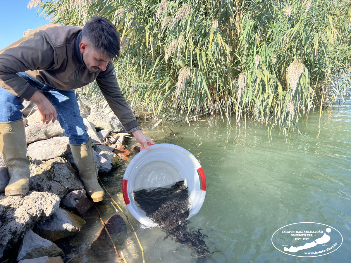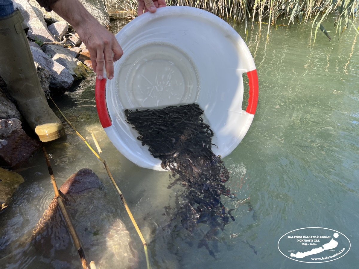 A menyhalakat halas kosarakba szákolva, majd azok segítségével a móló két oldalára öntve engedtük szabadon a helyi horgászok jelenlétében. A munkát facebook oldalunk történetében videón is megmutattuk.