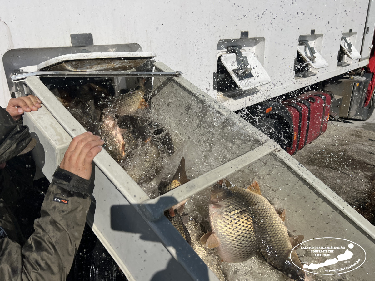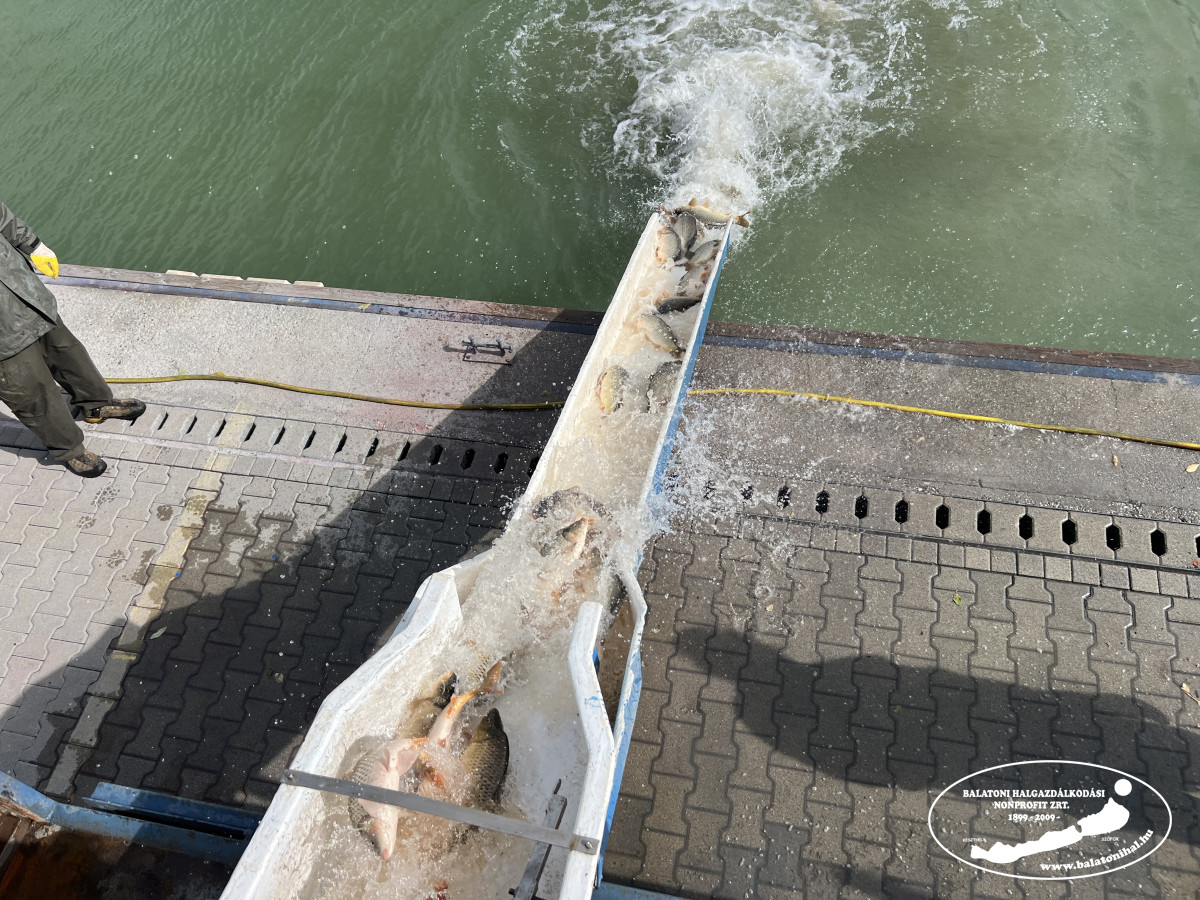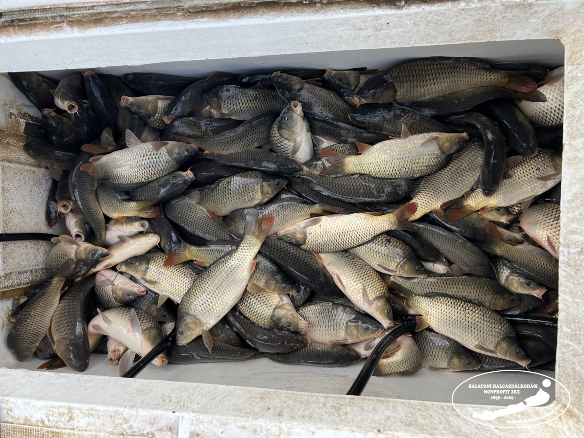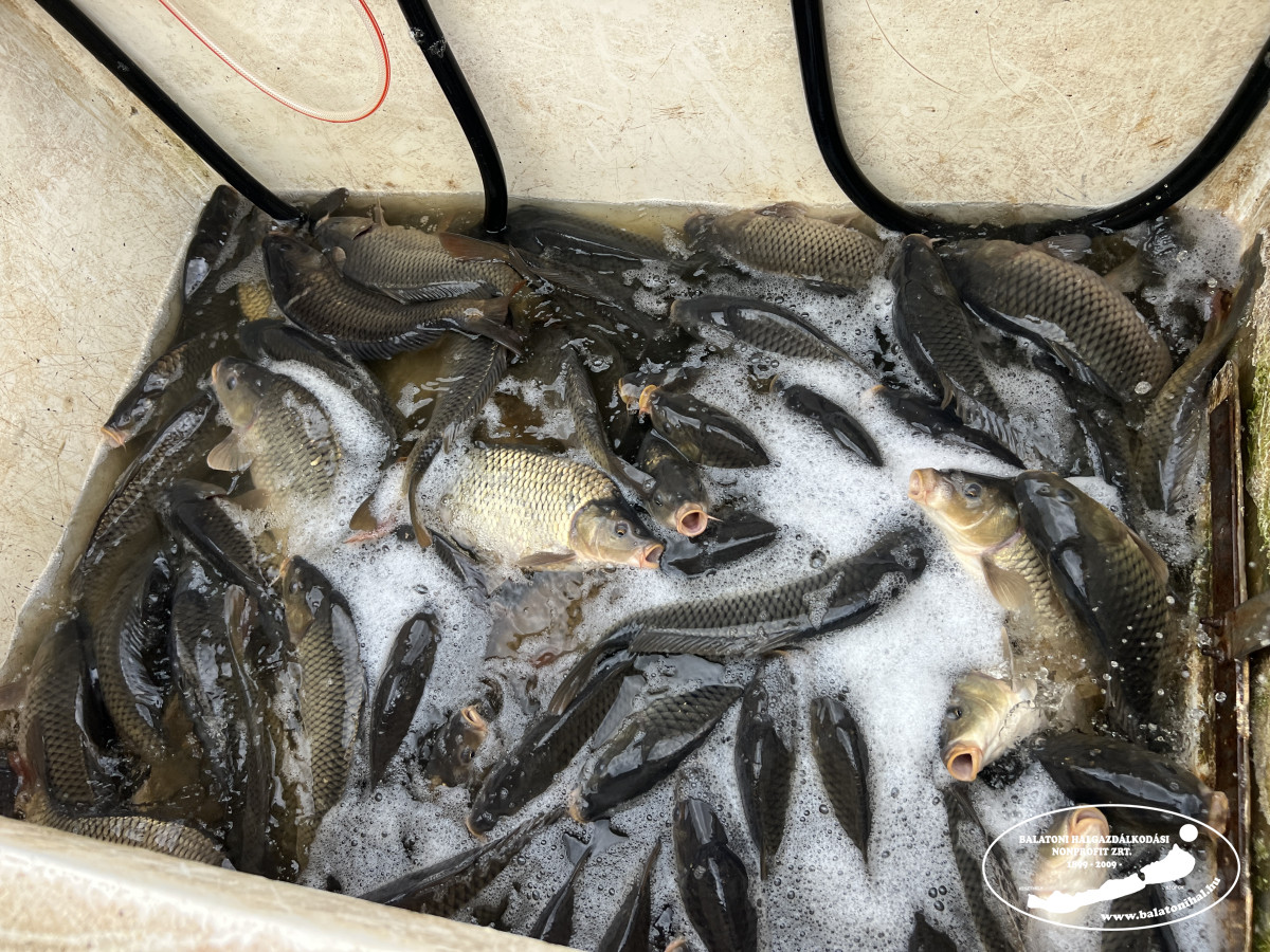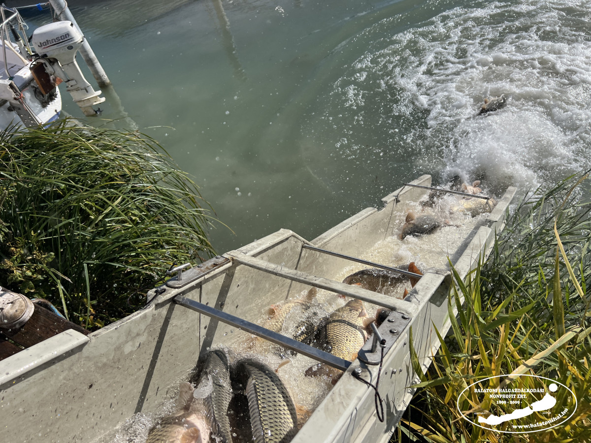 A mai nap folyamán három helyszínen összesen 14 959 kg háromnyaras pontyot telepítettünk a Balatonba. Ezzel együtt idén összesen 121 027 kg-ot teljesítettünk a 300.000 kg-os éves telepítési kötelezettségünkből. A fennmaradó mennyiséget decemberig fogjuk a tóba juttatni.