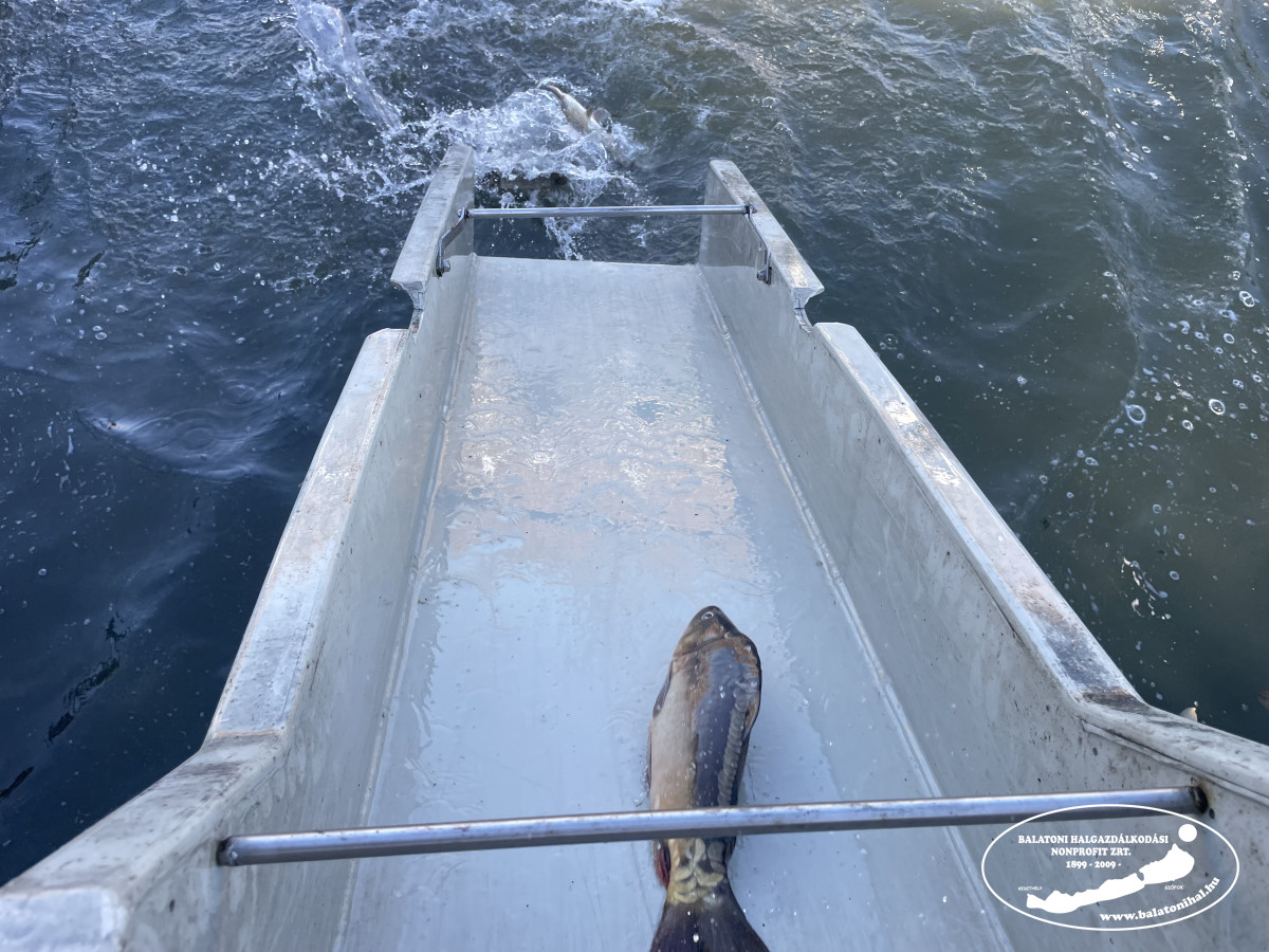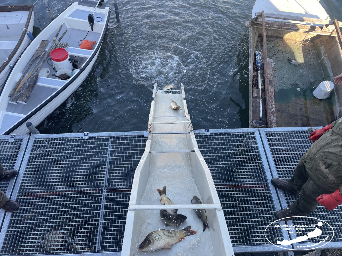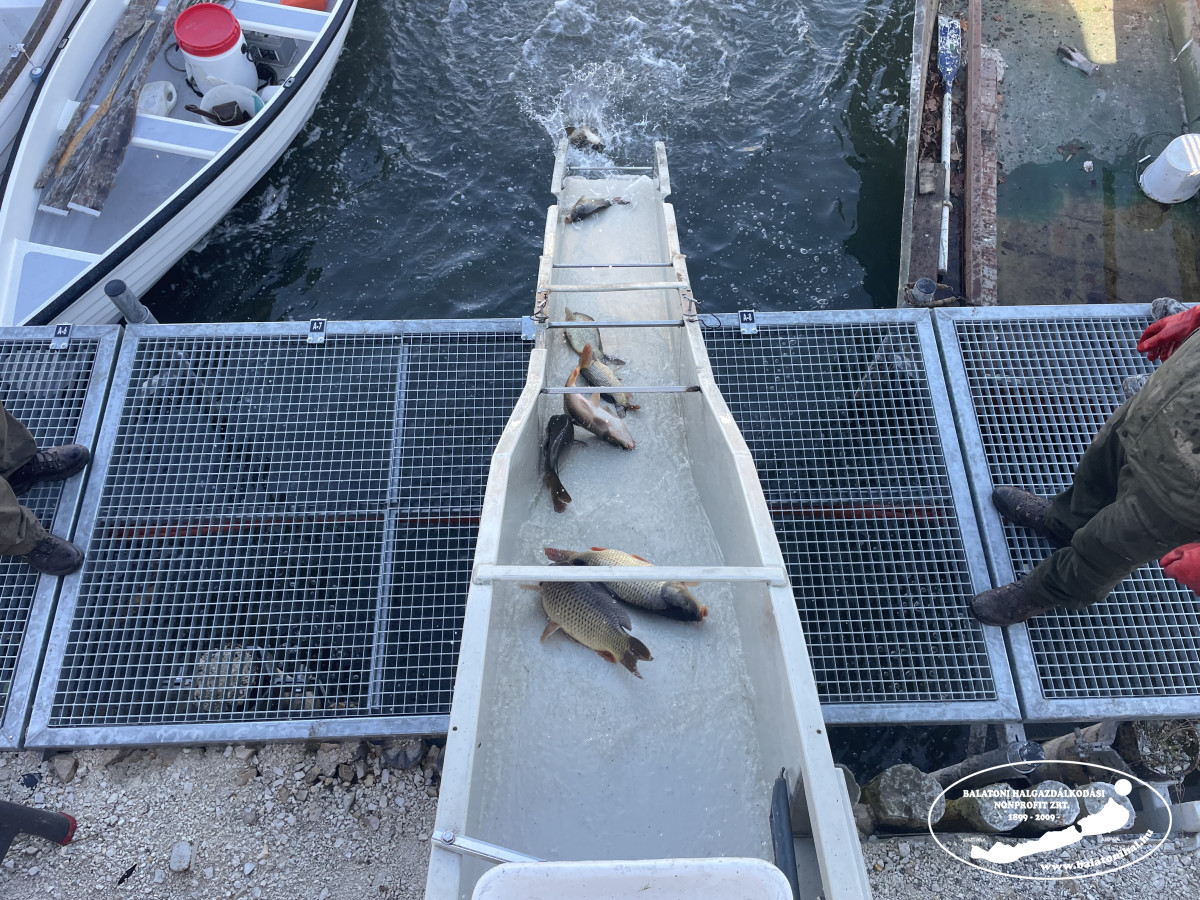 Ma Balatonudvariban telepítettünk háromnyaras pontyokat a tóba. Ezzel együtt idén összesen 236 762 kg-ot teljesítettünk a 300.000 kg-os éves telepítési kötelezettségünkből.