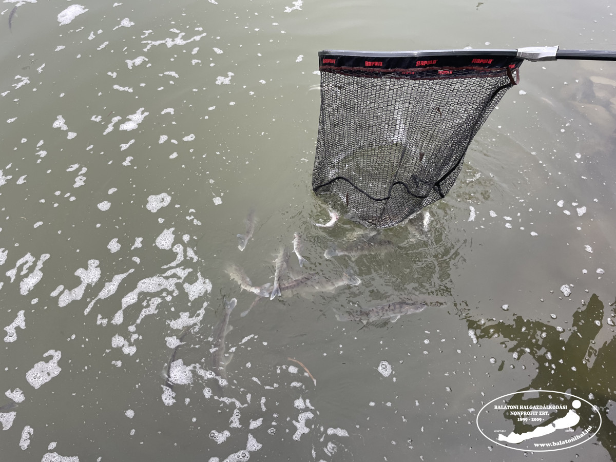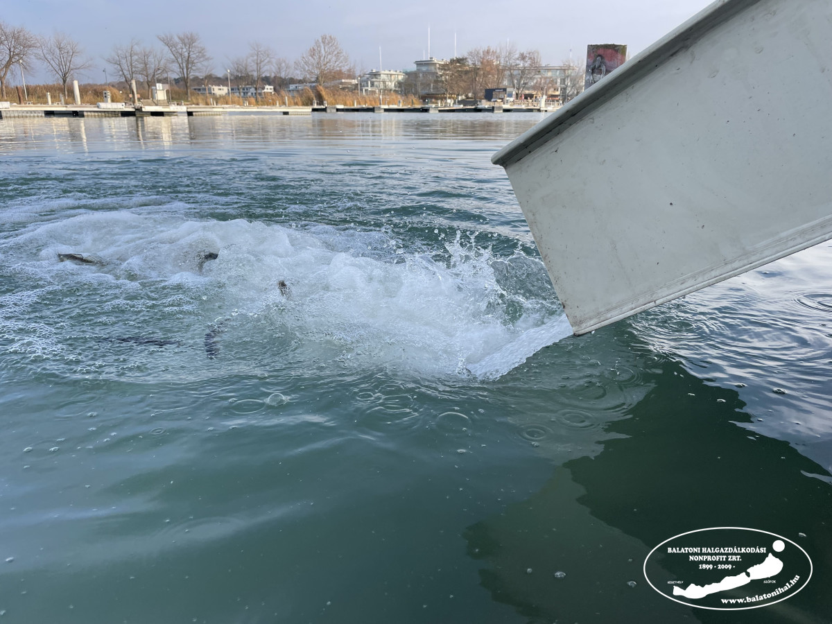 A fentnevezett mennyiséget 3 helyszínen telepítettünk a Balatonba a helyi horgászok jelenlétében.