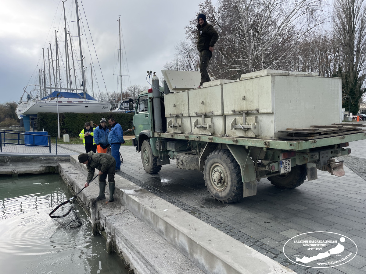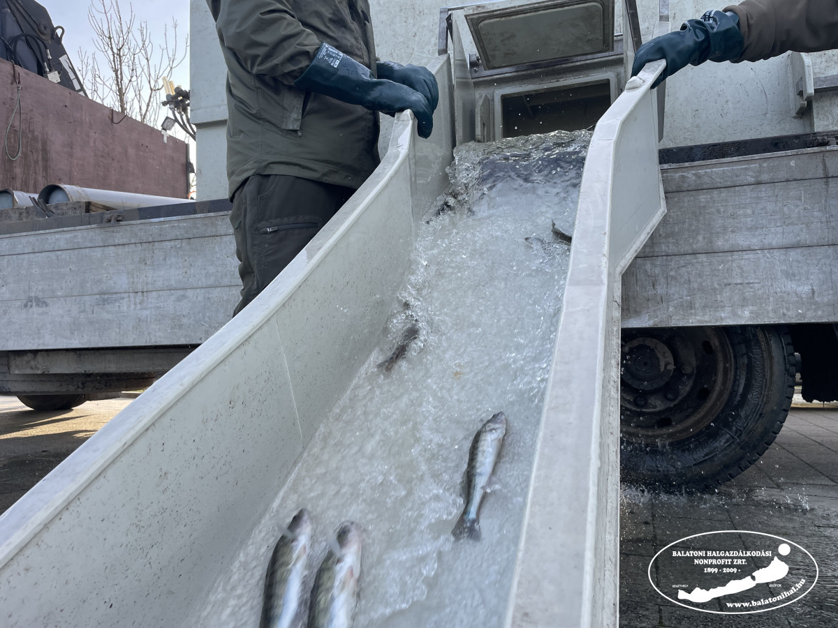 Ma három fuvarral összesen 766 kg egynyaras süllőt telepítettünk a Balatonba. Ezzel együtt az idei évben összesen 3 997 kg egy- és kétnyaras süllőt teljesítettünk a 6 000 kg-os éves telepítési kötelezettségünkből. A fennmaradó mennyiséget év végéig fogjuk a tóba telepíteni.