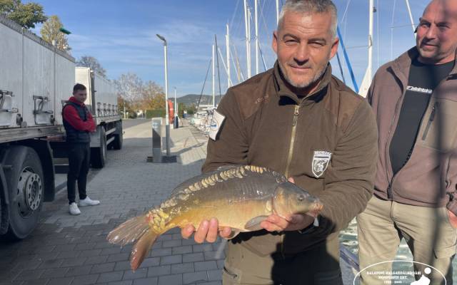 Várhatóam 09:50-kor, 2843 kg háromnyaras pontyot fogunk telepíteni a balatonlellei kikötőben.