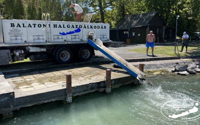 Várhatóan 09:15-kor, 312 kg egynyaras süllőt fogunk telepíteni a Lellei kikötőbe.