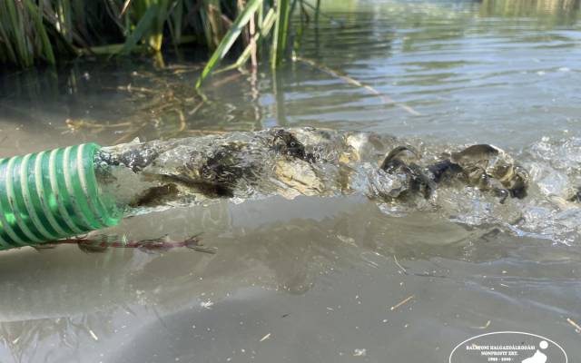 Várhatóan 1 óra múlva 50 000 darab előnevelt süllőt fogunk telepíteni a Zalavári út mentén, majd később 15 óra körül 1 500 000 darab zsenge ponty ivadékot fogunk kihelyezni a Nyugati-övcsatornán.