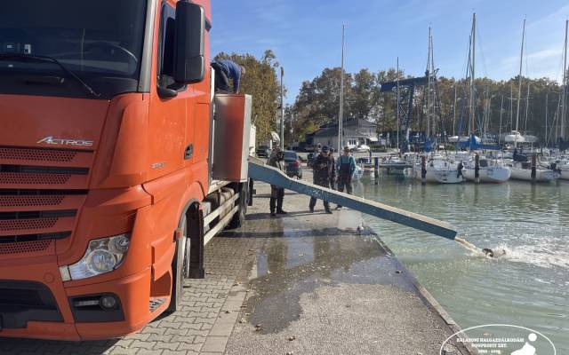 Várhatóan 10:30-kor fogunk 8500 b egynyaras menyhalat telepíteni a Szántód-rév kikötőben.