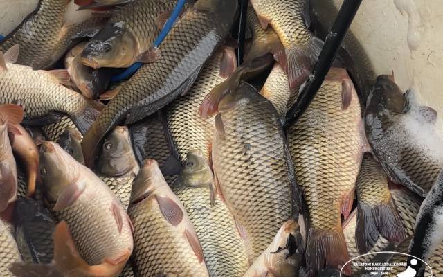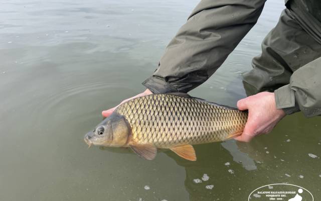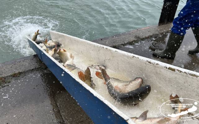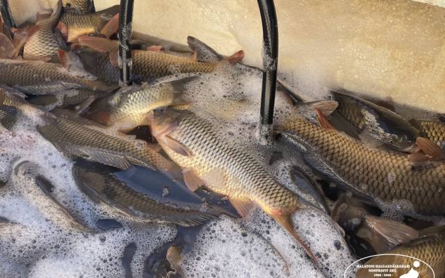 A mai napon, 2 640 kg háromnyaras pontyot telepítettünk a Balatonba.