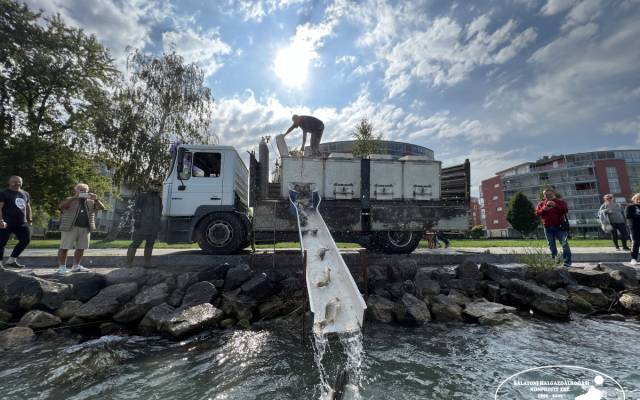 A mai napon, újabb pontyszállítmány érkezett a Balatonba.