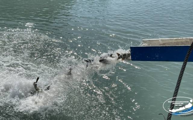 A mai napon ismét kétnyaras pontyokat helyeztünk ki a Balatonba.