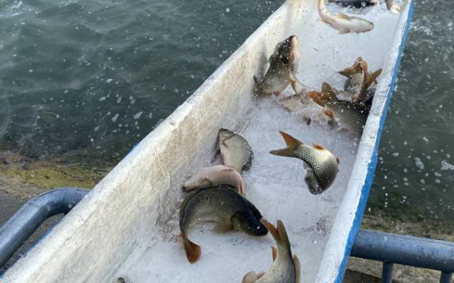 A mai napon, 5 340 kg kétnyaras pontyot telepítettünk a Balatonba.