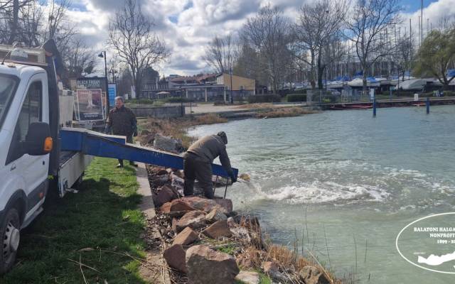 Tegnap délután, 1600 darab egynyaras kősüllőt telepítettünk a Balatonba.
